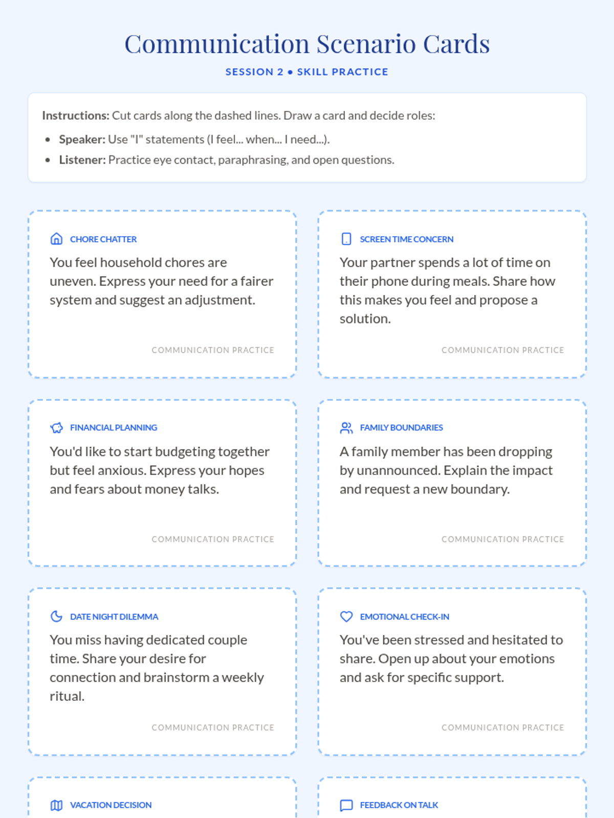 Practice active listening and clear expression to reduce misunderstandings and build empathy through guided discussions and role-play scenarios.