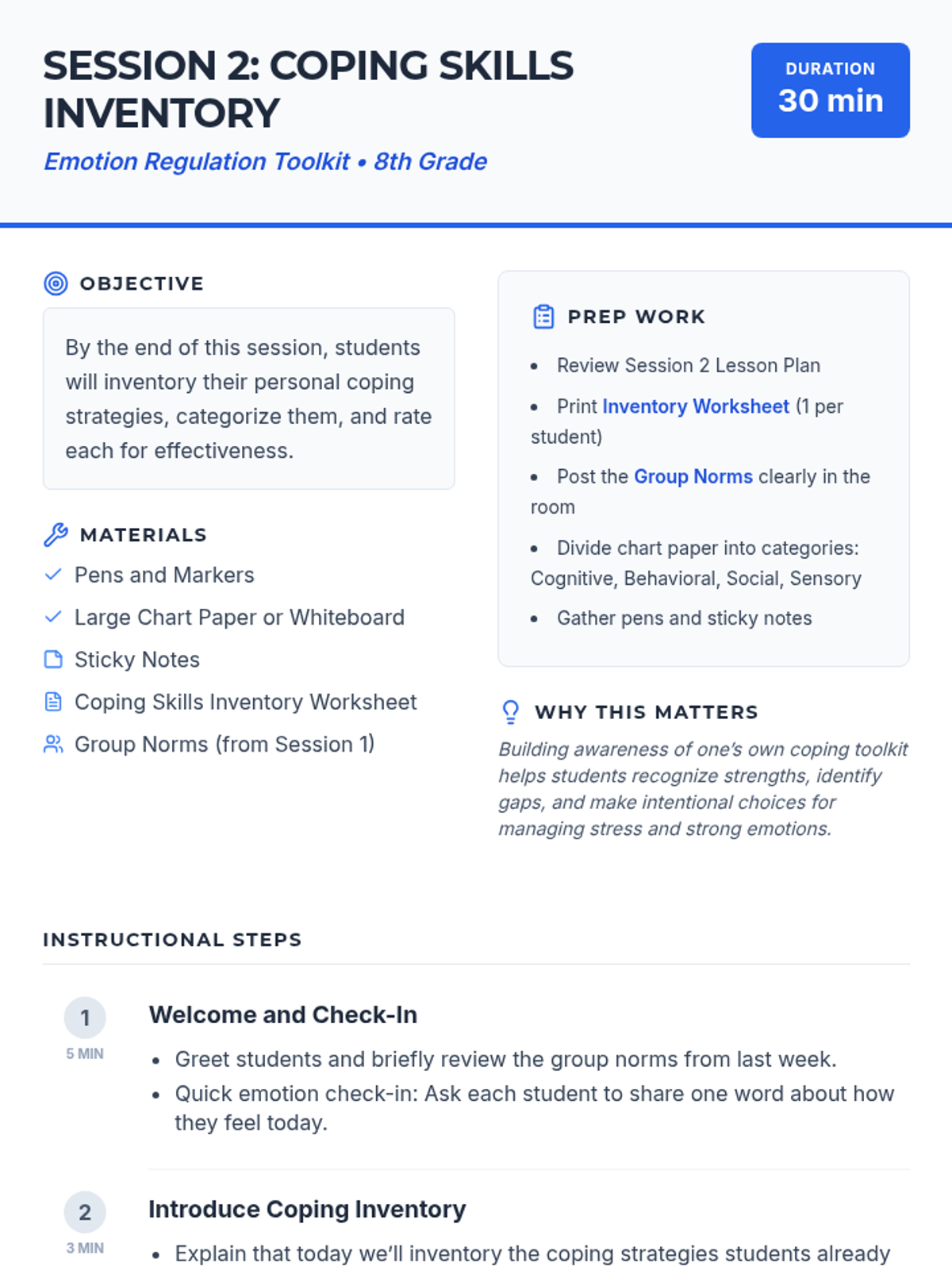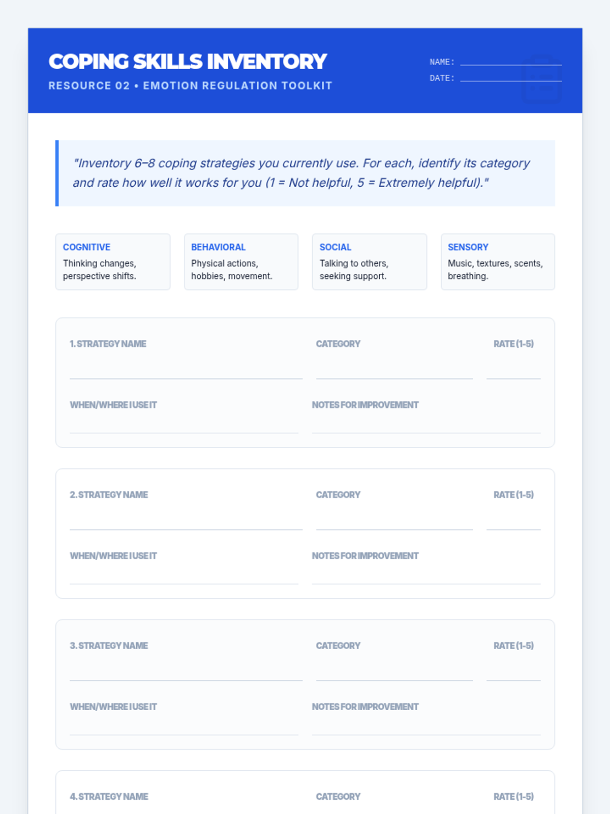 Building awareness of one’s own coping toolkit helps students recognize strengths, identify gaps, and make intentional choices for managing stress and strong emotions.