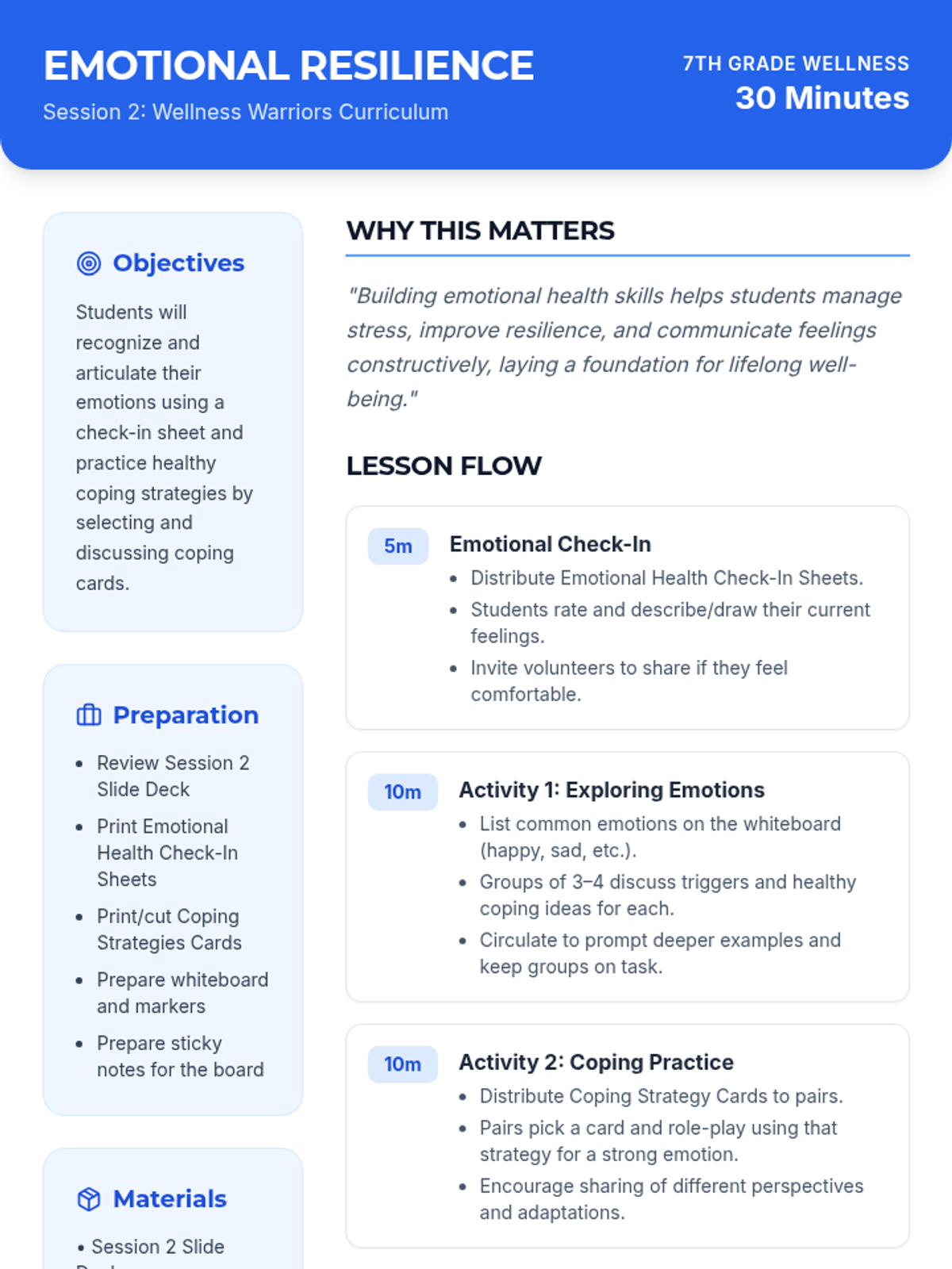 Teaches students to recognize their emotions and provides a toolkit of healthy coping strategies for managing stress and strong feelings.
