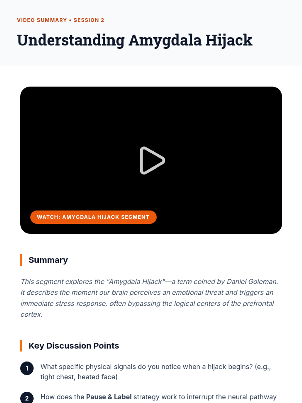 Leaders explore the neuroscience of emotional triggers and develop proactive strategies to manage 'amygdala hijacks' in high-stress situations.