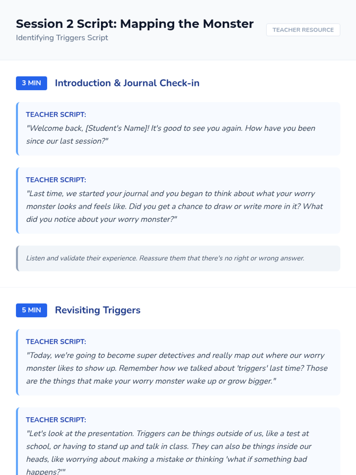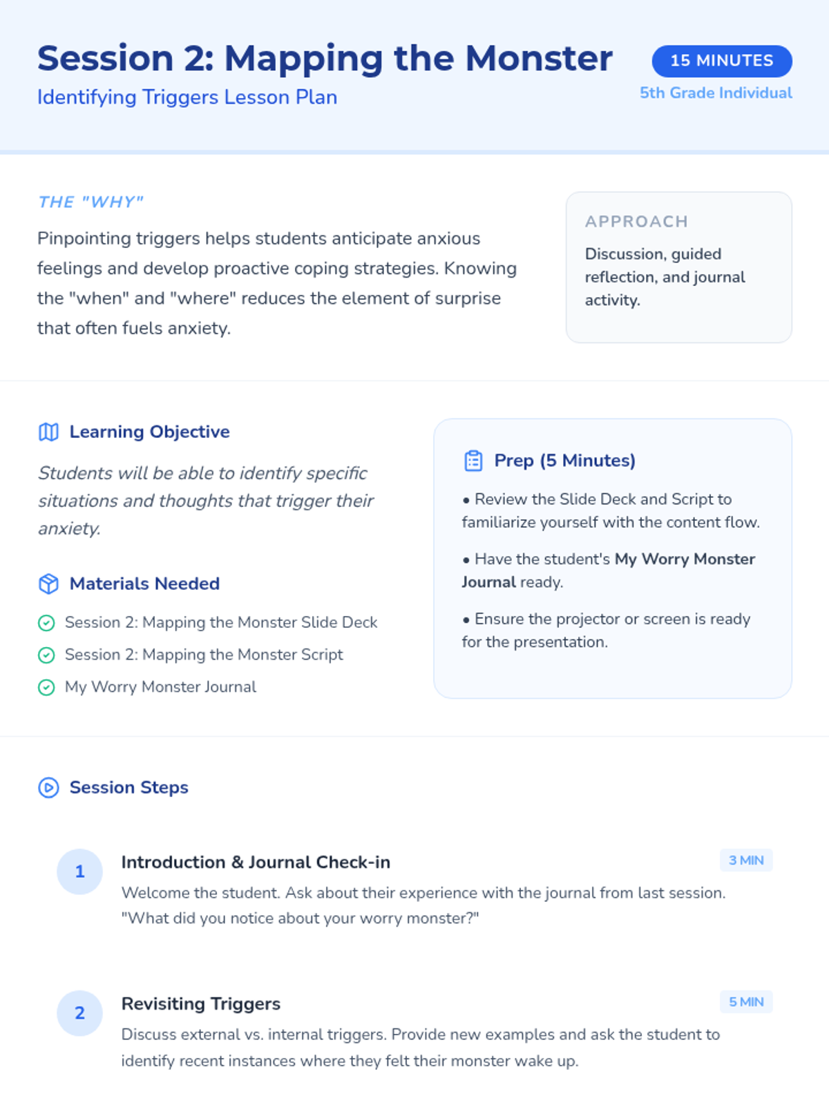 Focuses on pinpointing specific triggers, both external and internal, using a 'mapping' approach to help students anticipate and prepare for anxious moments.