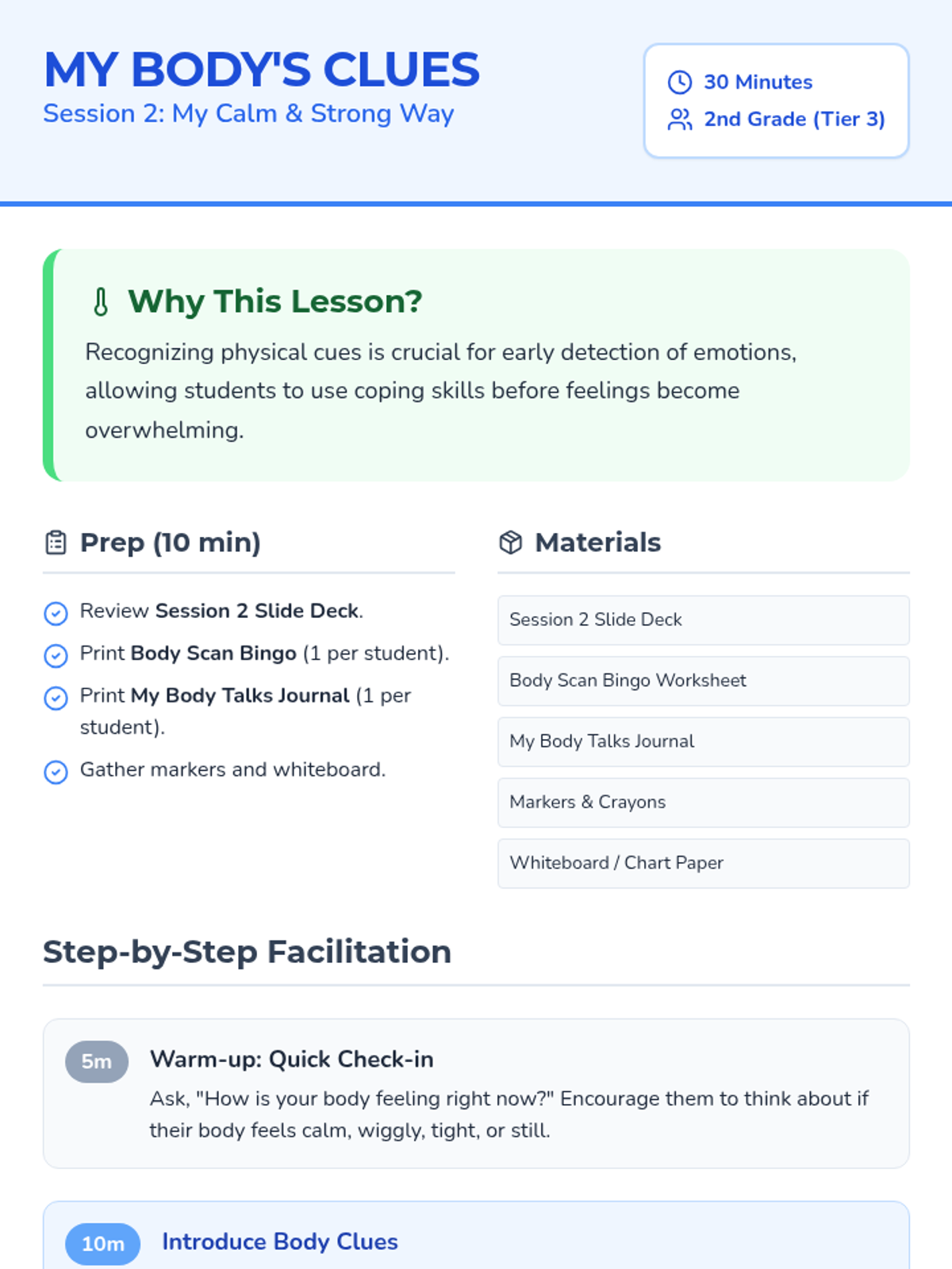 Teaches students to identify physical sensations connected to different emotions to enable early detection.