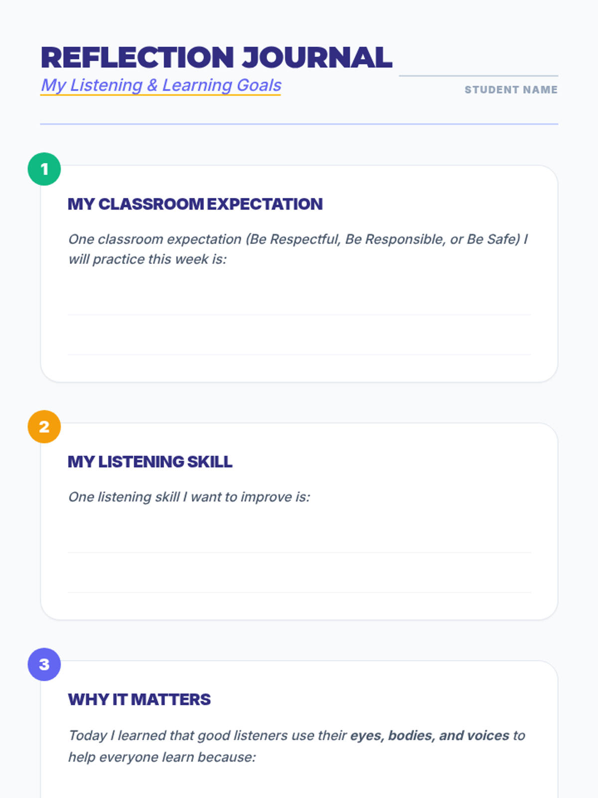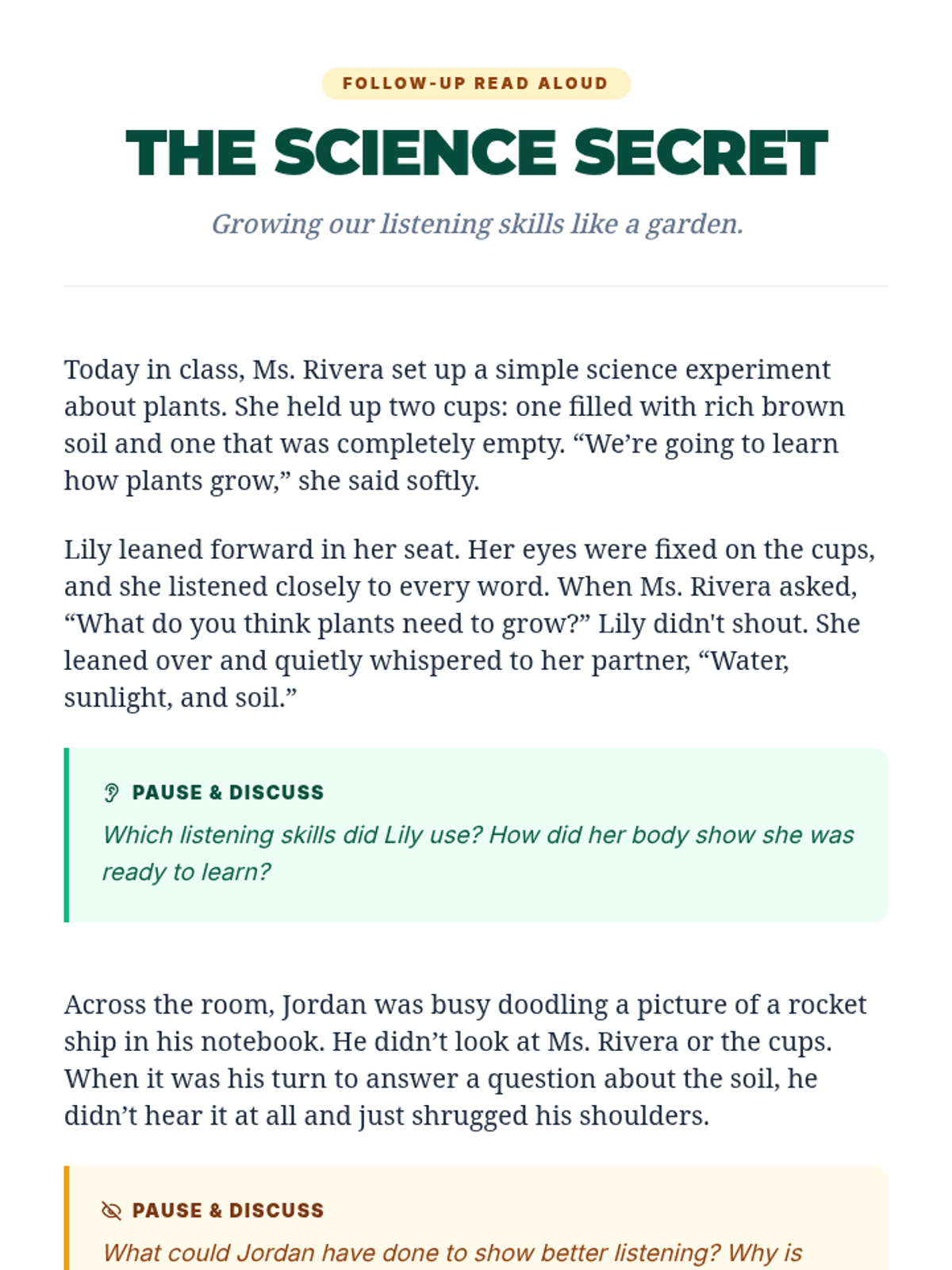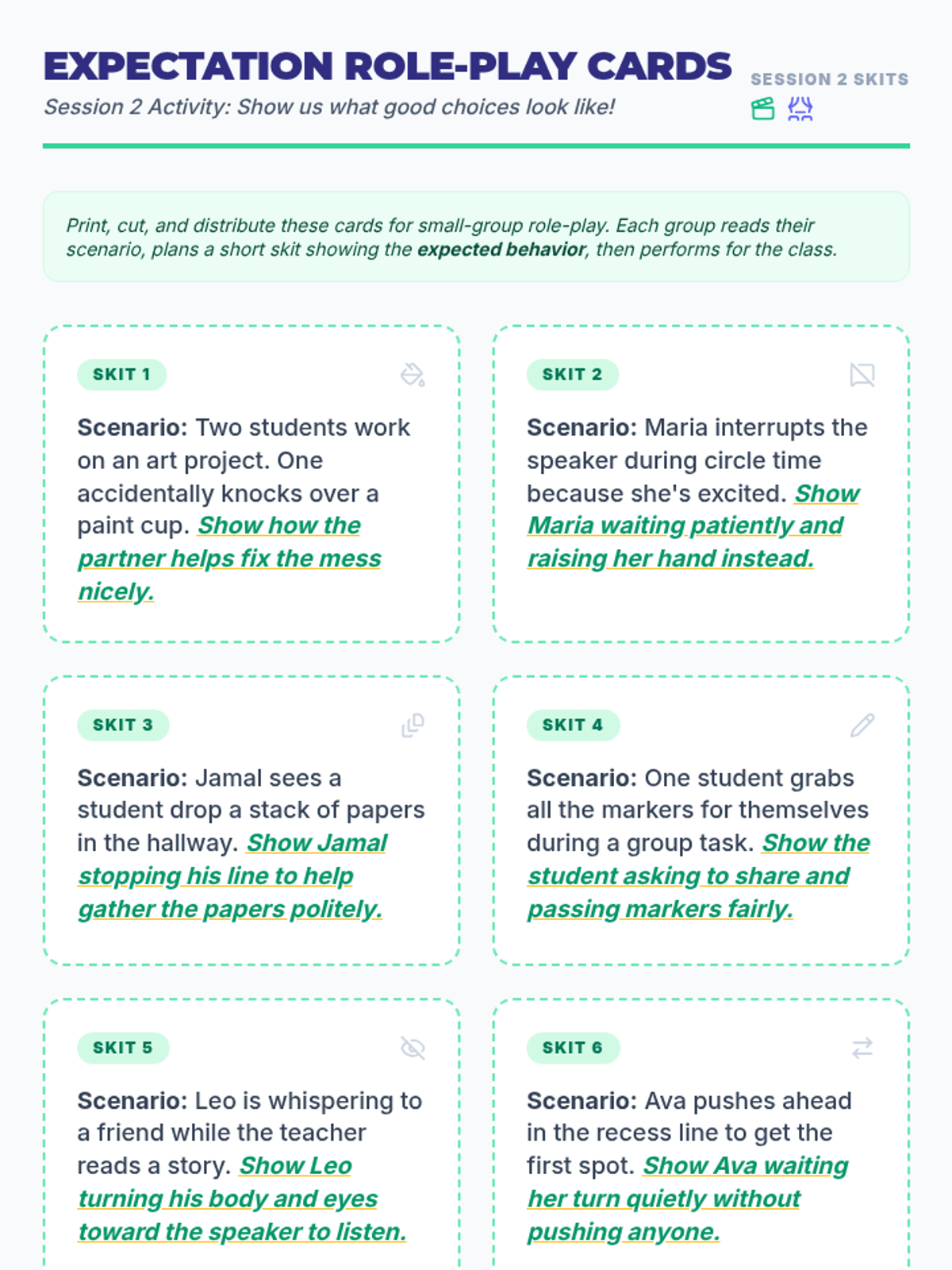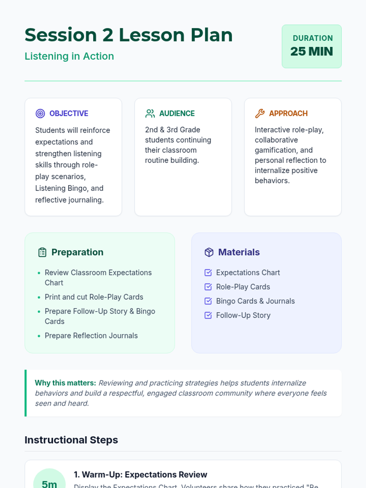 Reinforcing behavior expectations and deepening listening skills through role-play and reflection.