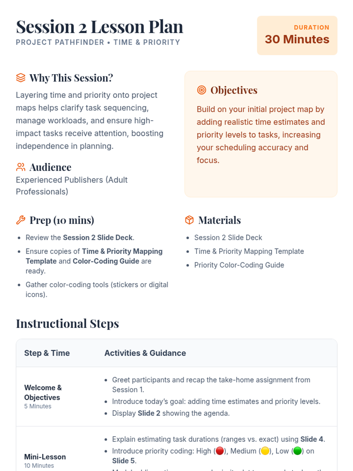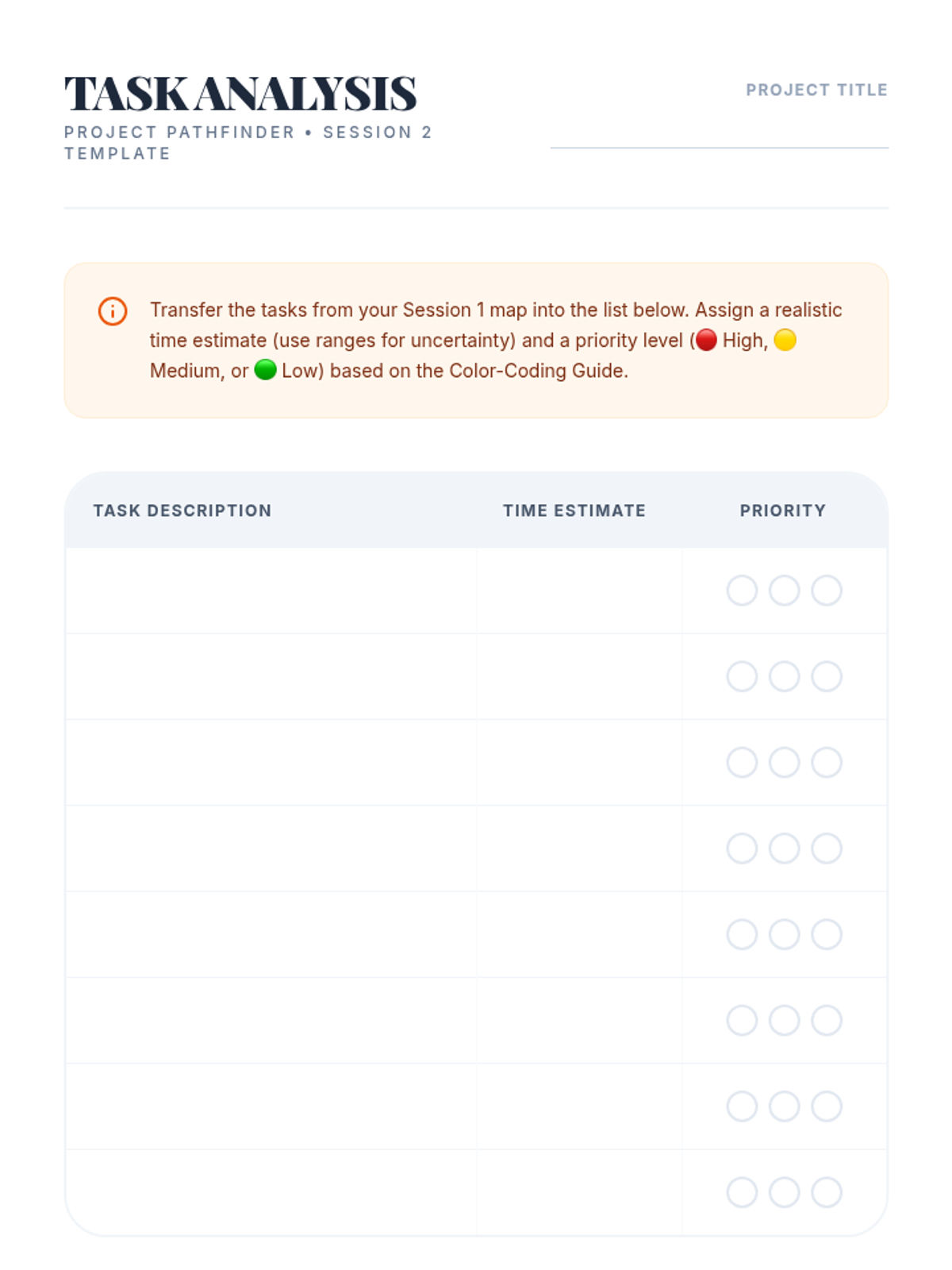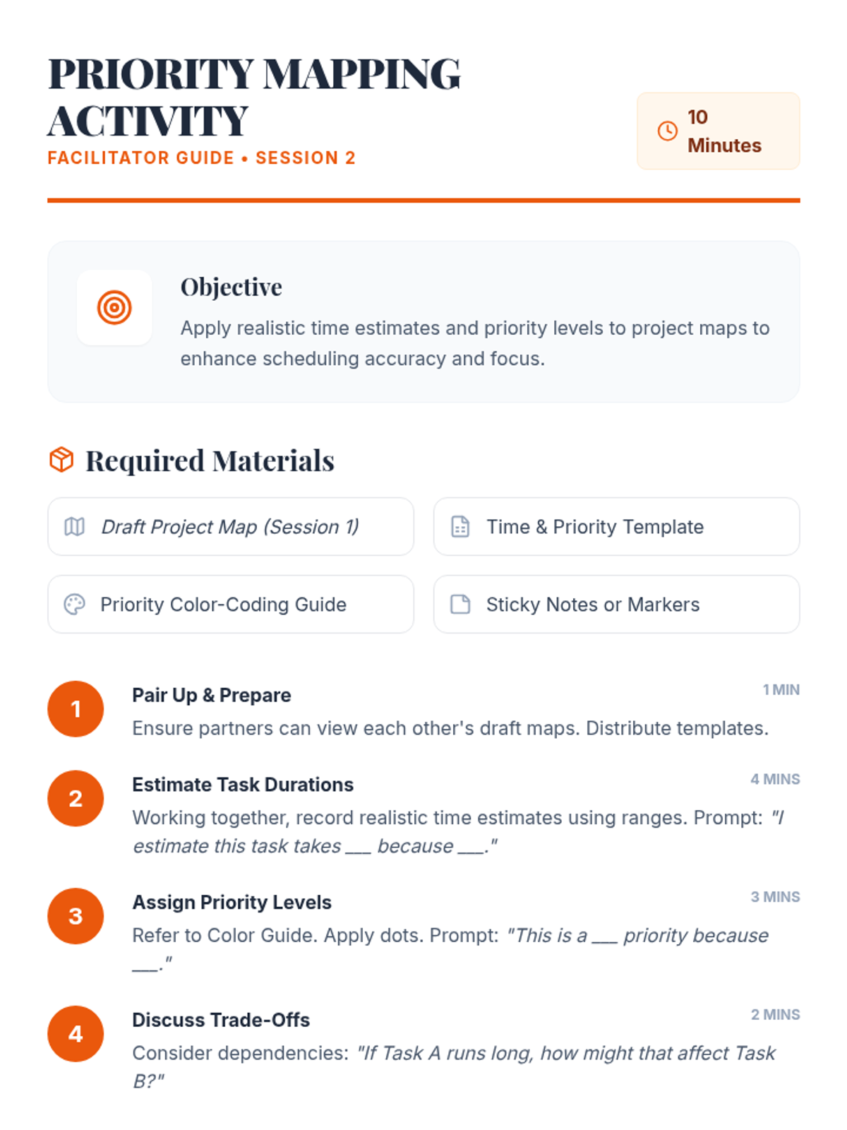 Layers time estimation and priority levels onto project maps to improve scheduling accuracy and strategic focus.
