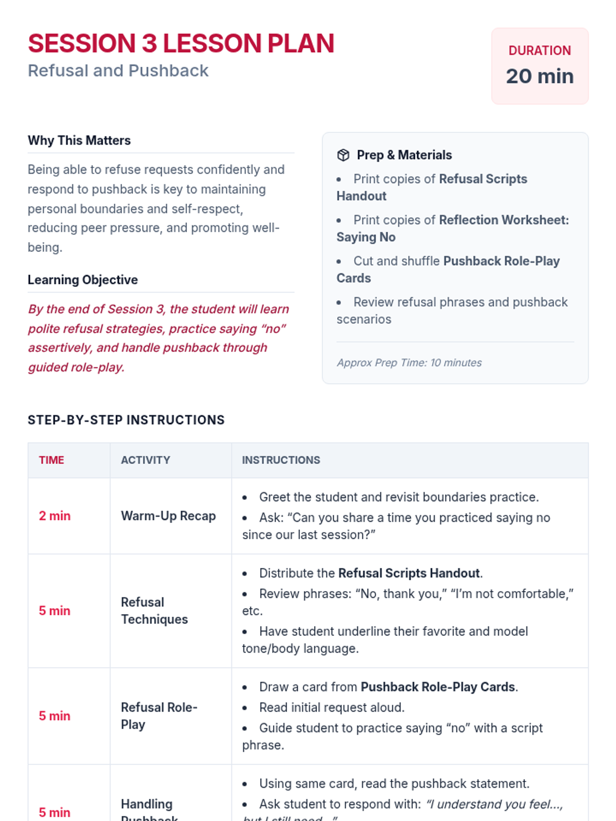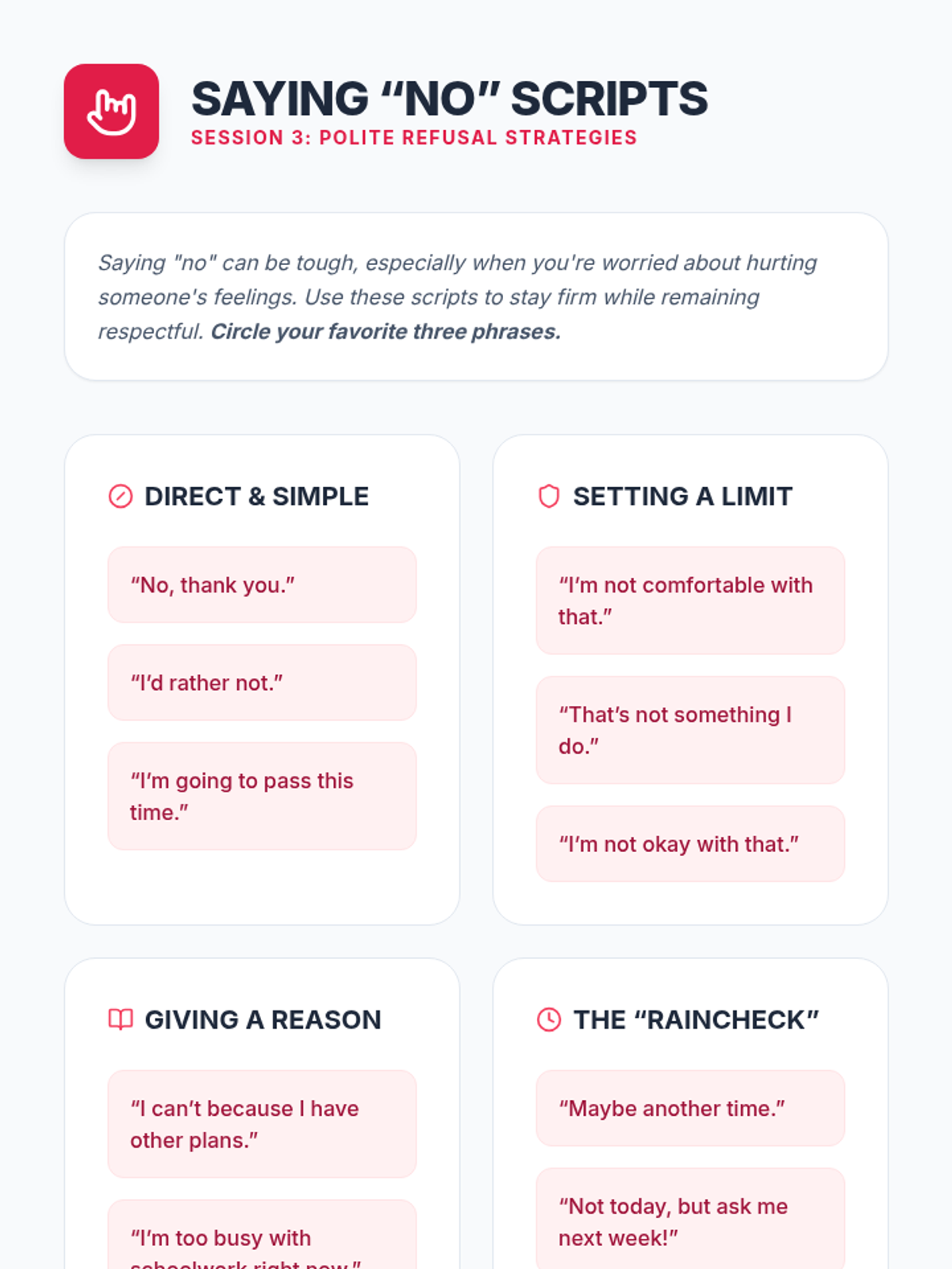 Focuses on techniques for assertive refusal and strategies for handling pushback when others challenge established boundaries.