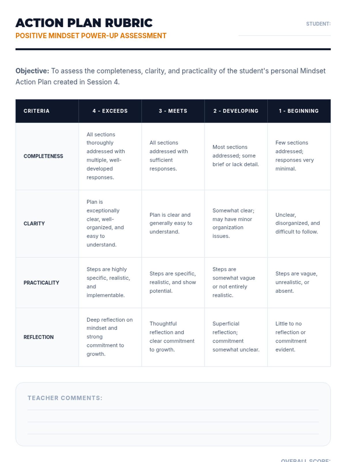 Session 4 Mindset Action Plan Rubric