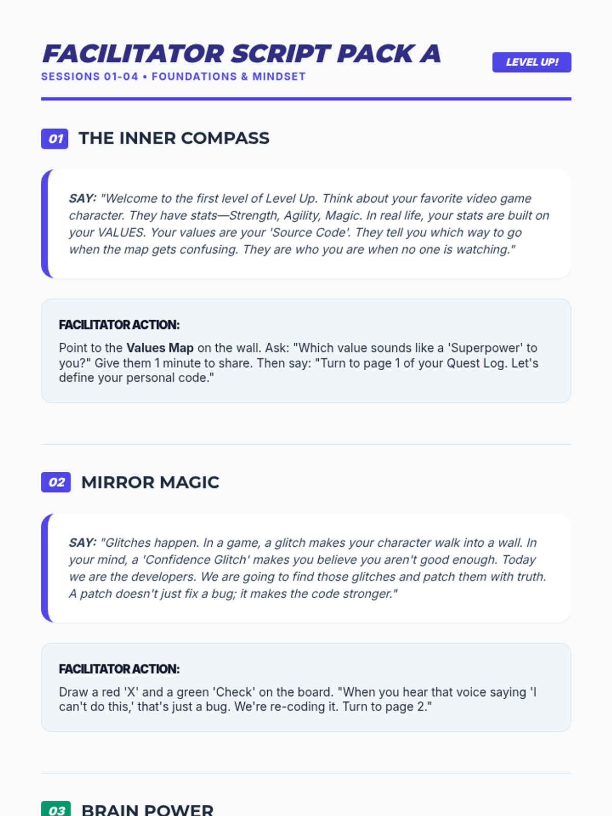 Teaches emotional regulation through the Notice-Name-Breathe method and building a resilience toolkit.