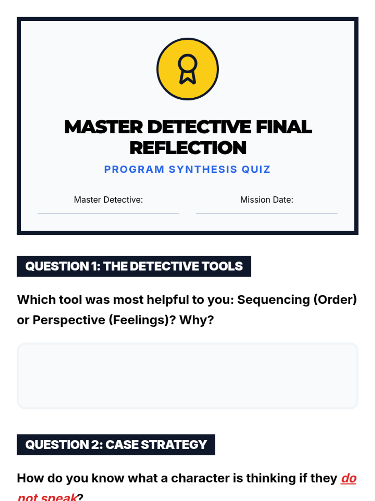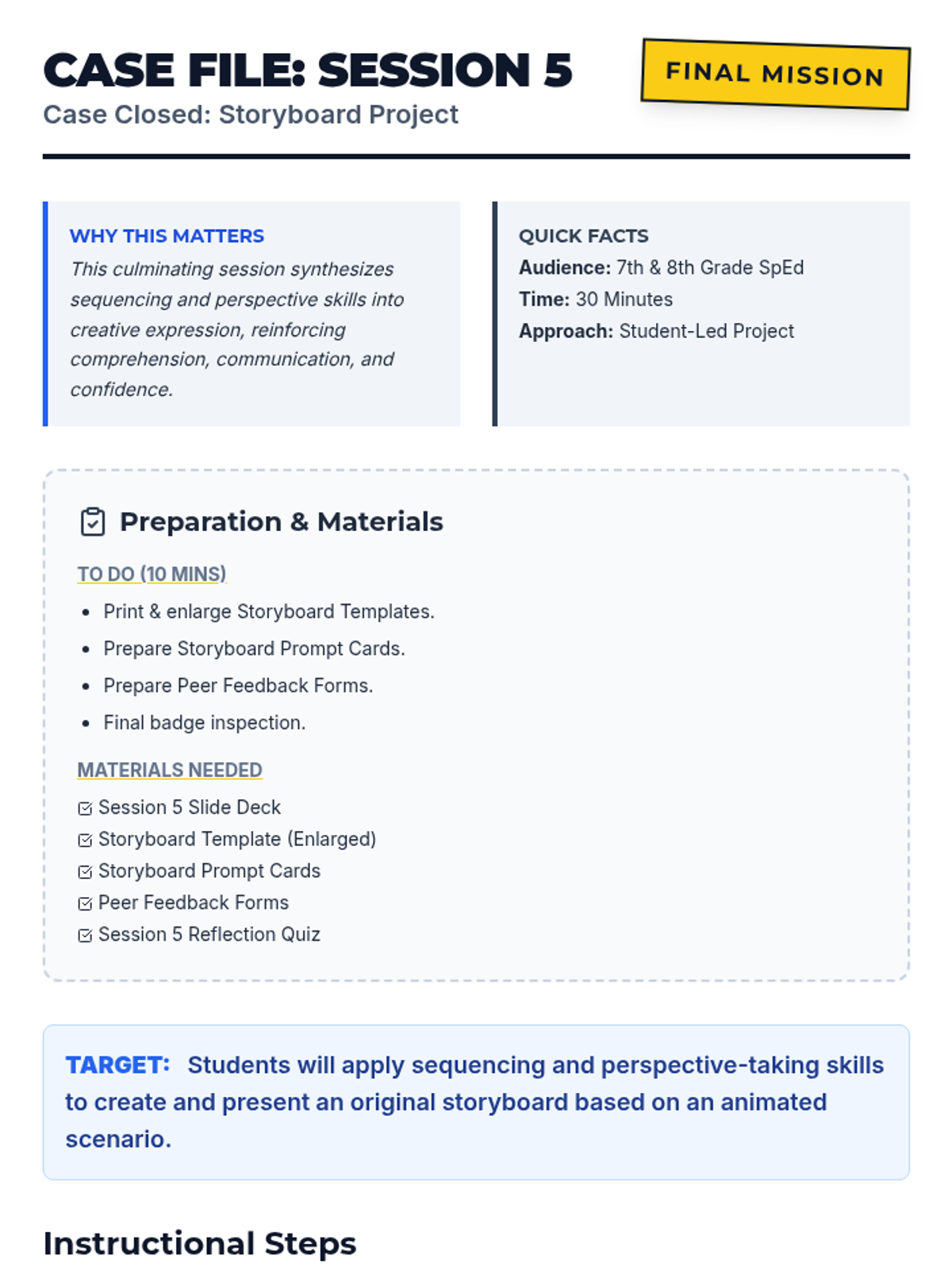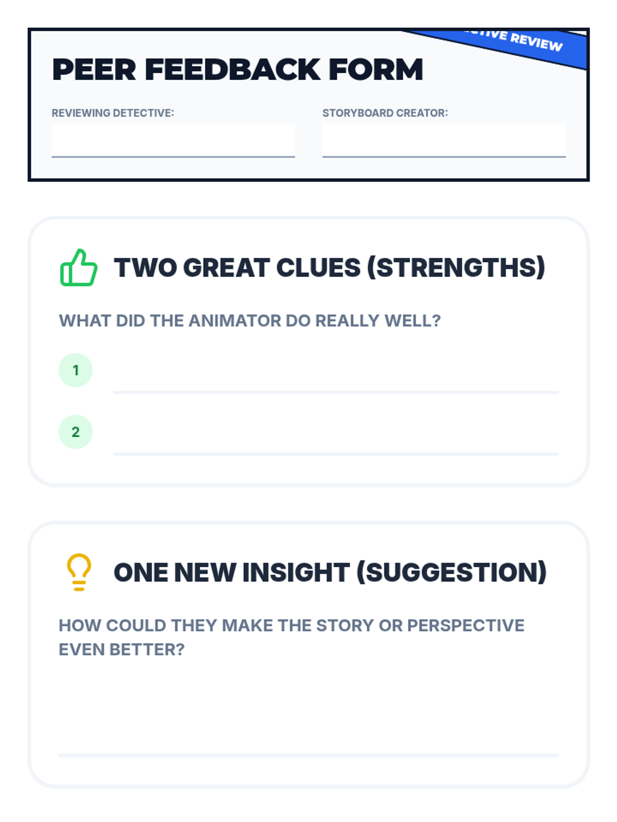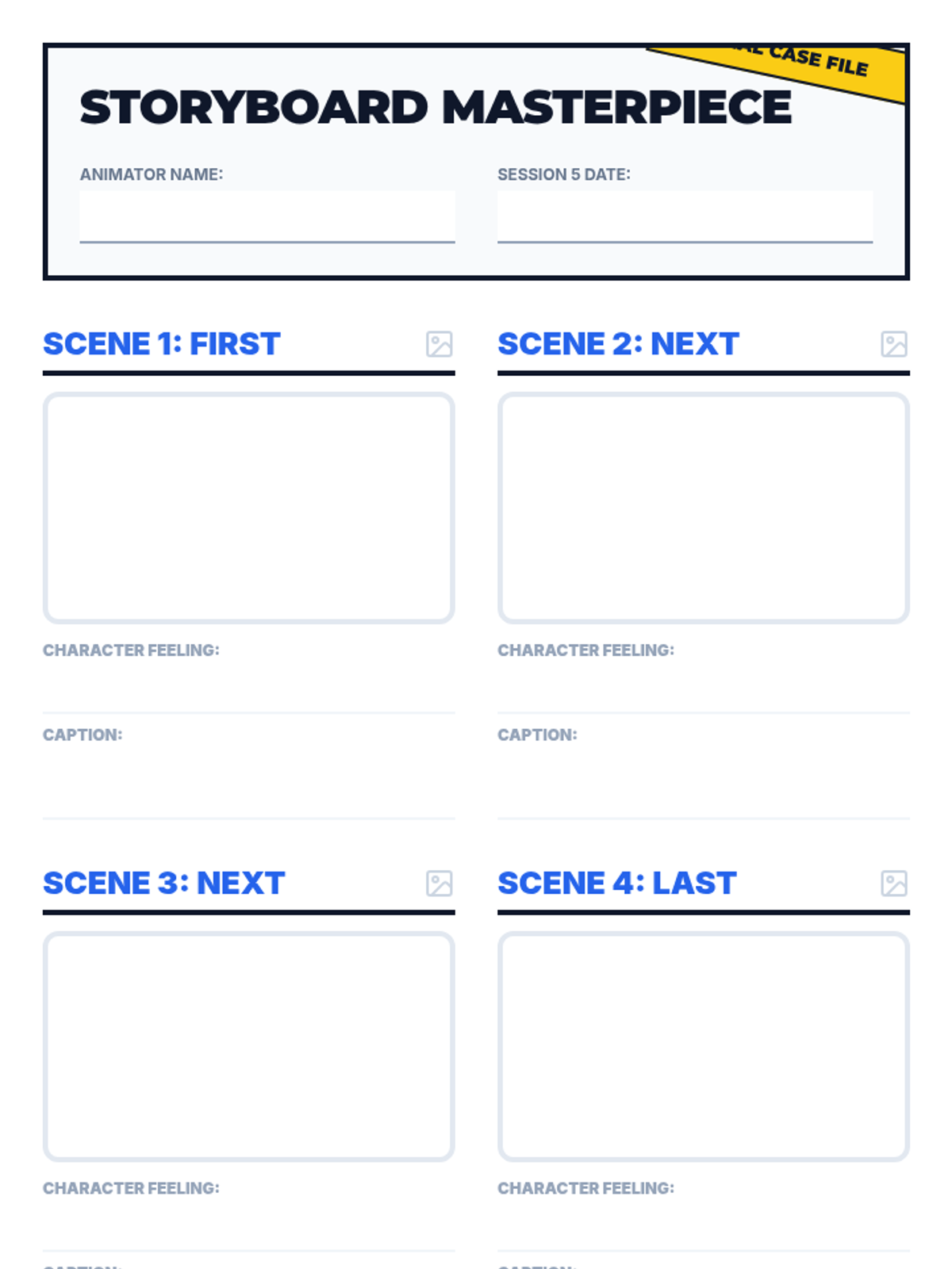 Culminating project where students create and present original storyboards. Students synthesize all detective skills to tell their own visual story.