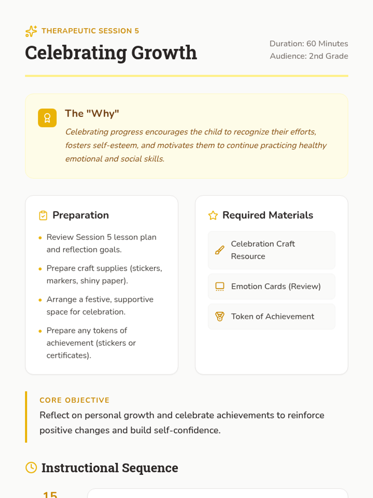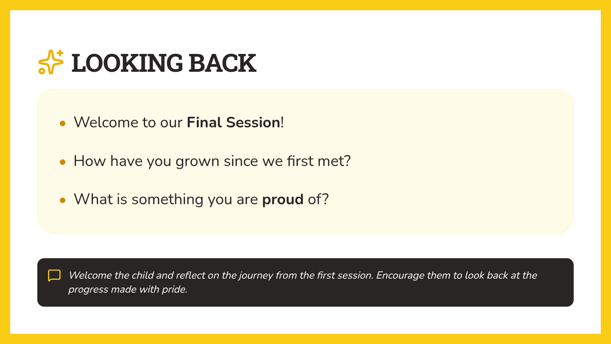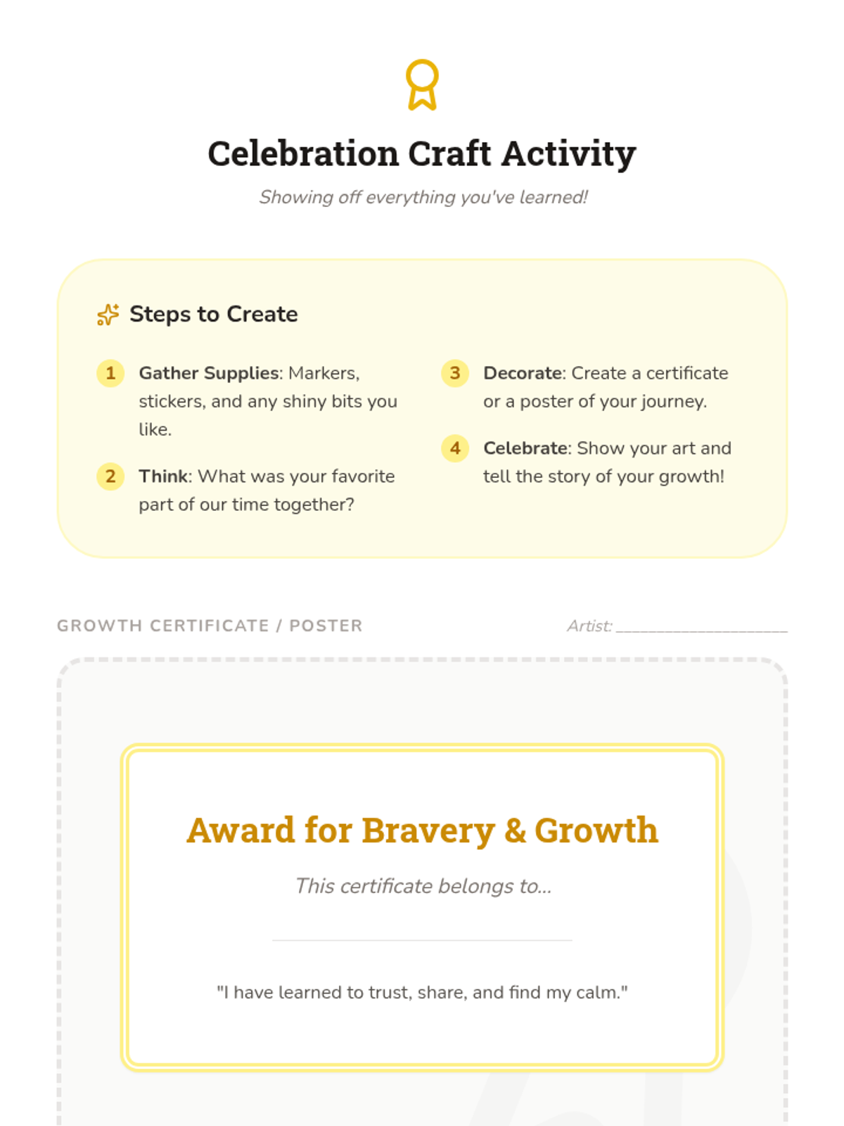Reflects on personal progress and celebrates growth with a creative achievement craft.