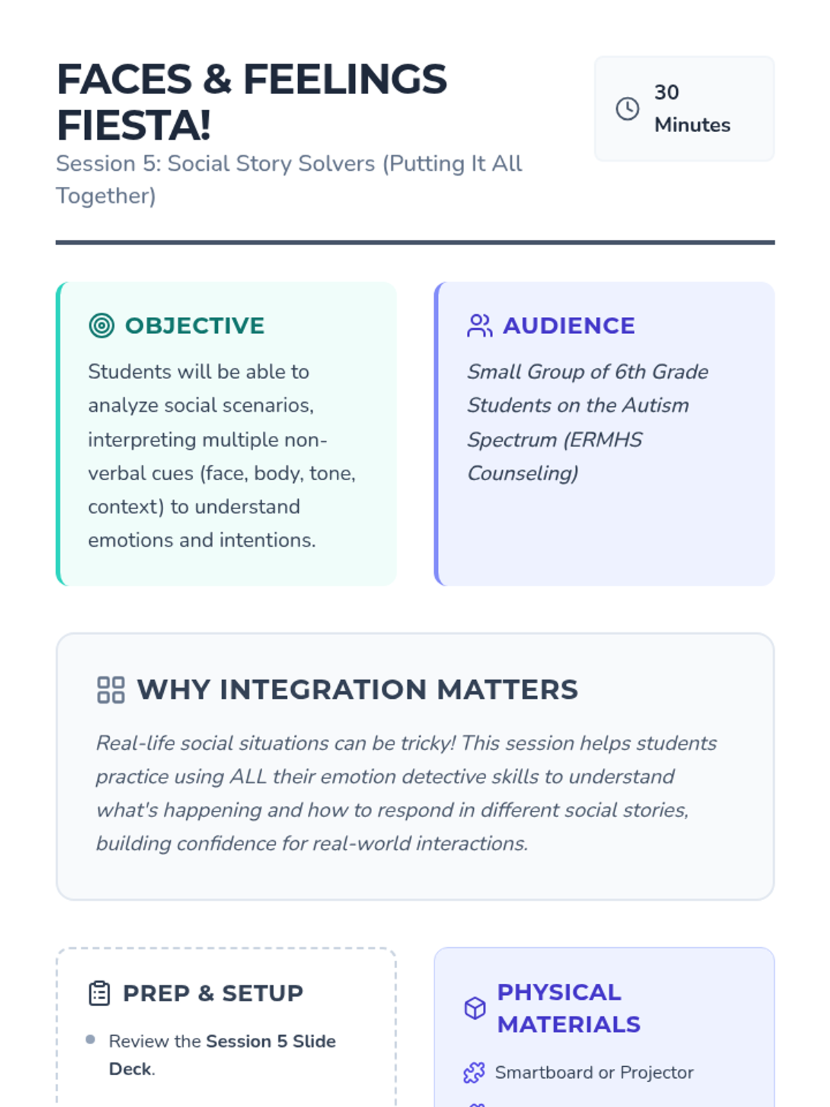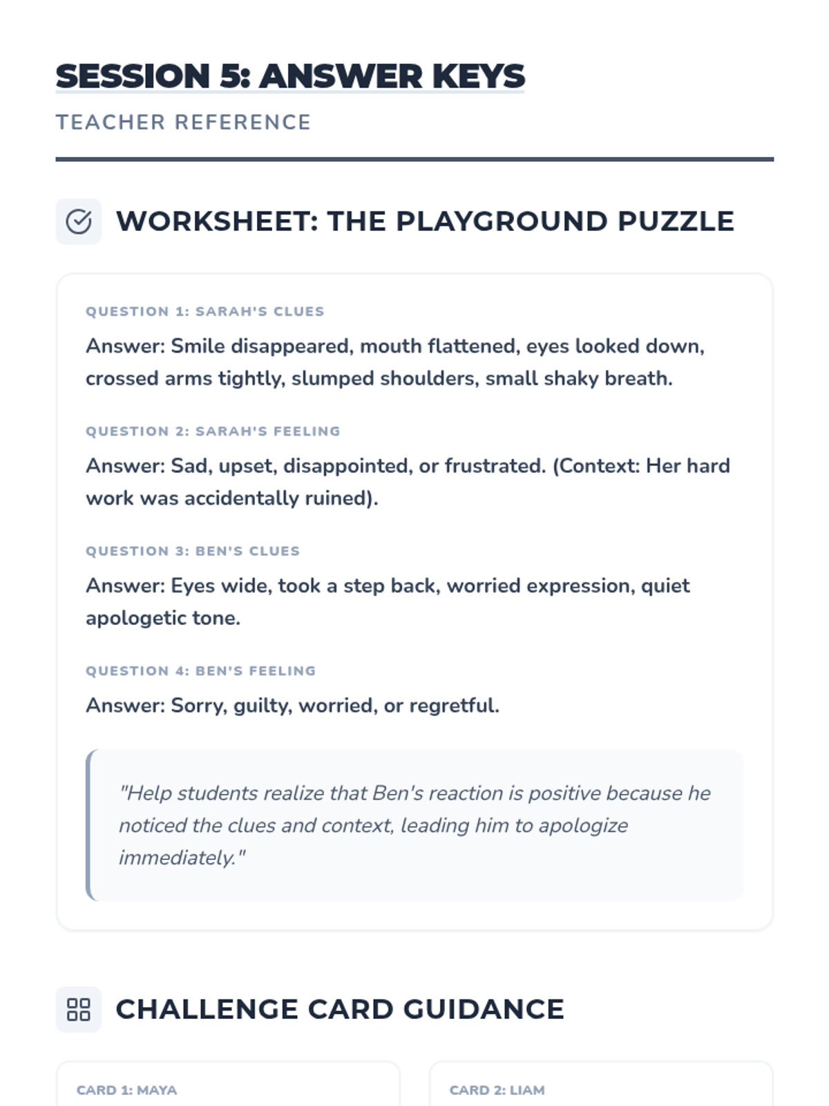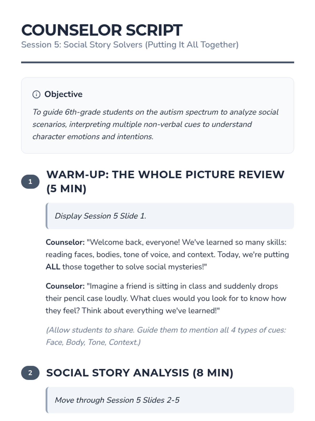 Students integrate all previous skills to analyze complex social scenarios and suggest appropriate responses.