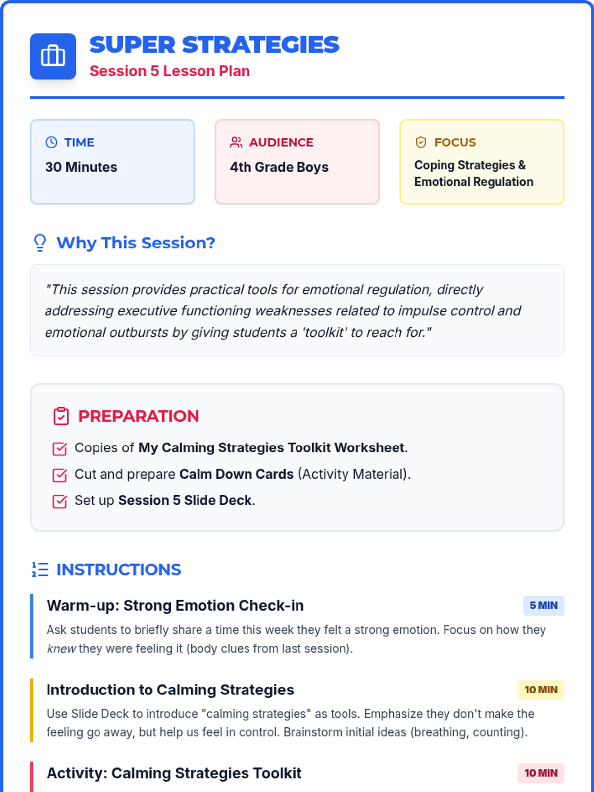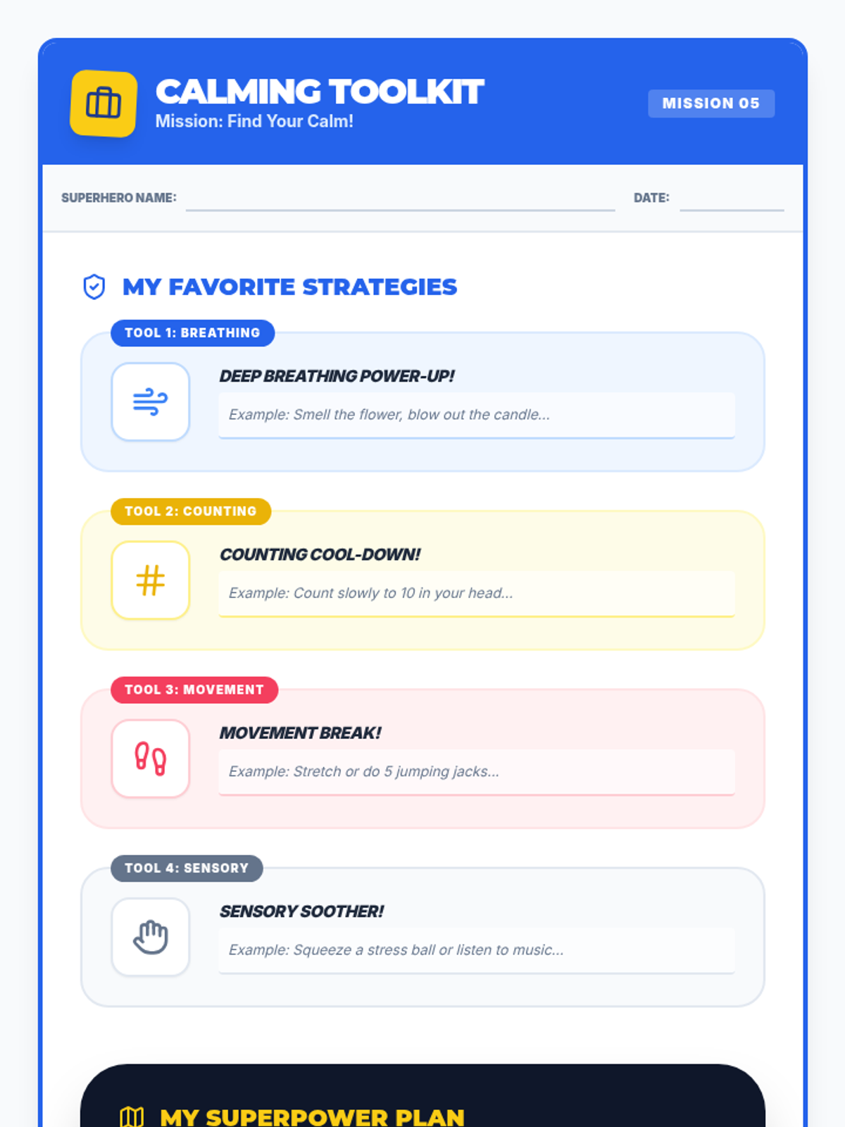 Provides practical tools for emotional regulation. Students build a "toolkit" of strategies like deep breathing and grounding to manage overwhelming emotions.