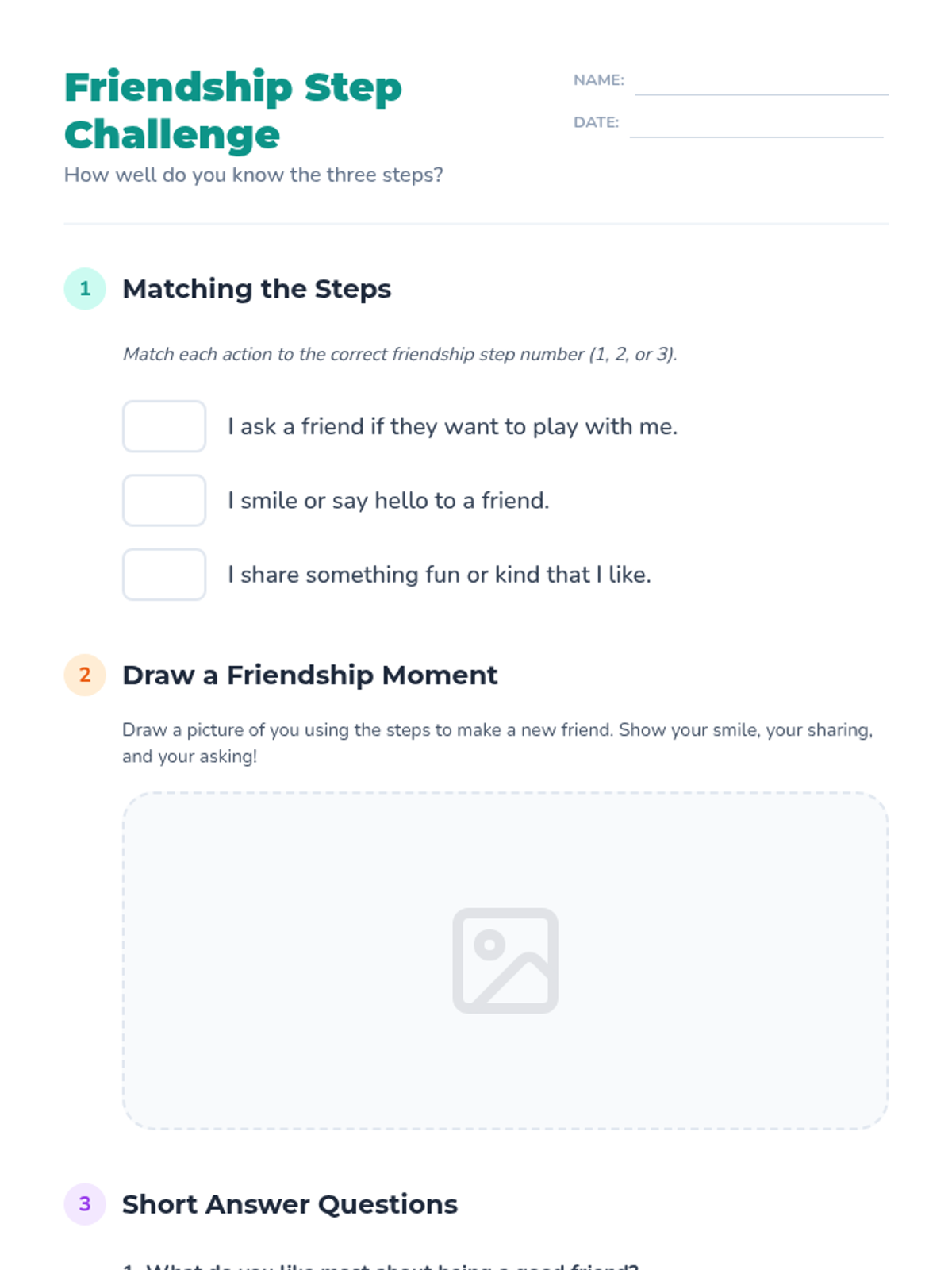 Reinforcing concepts through a structured worksheet that includes matching, drawing, and short answer reflections.