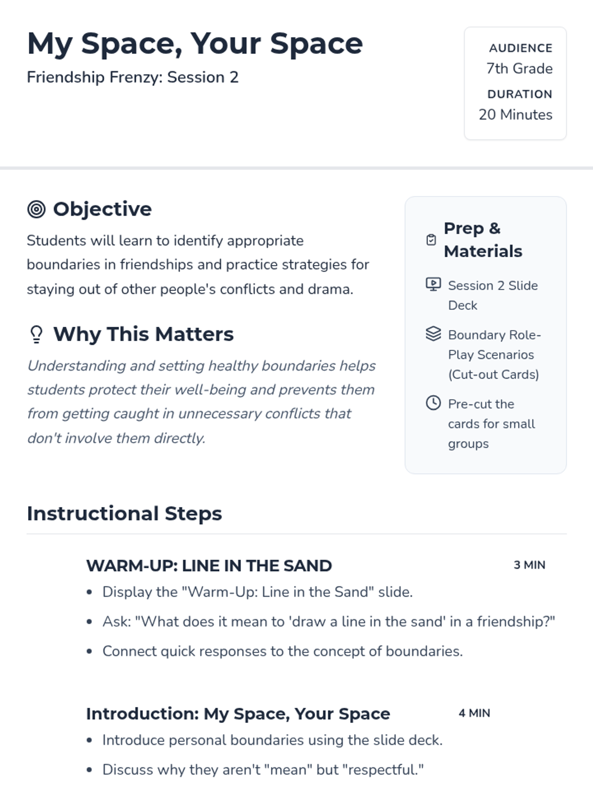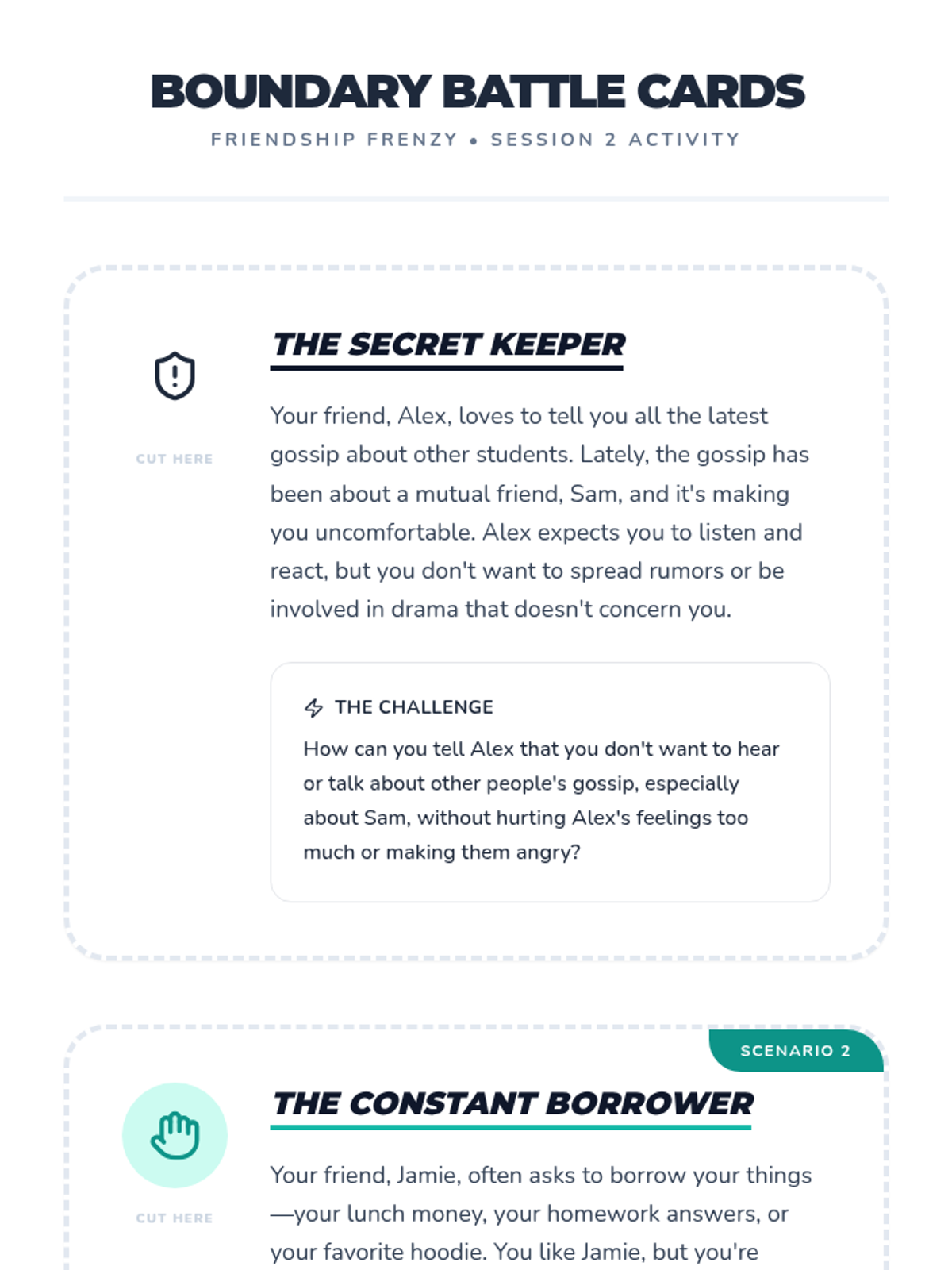 Teaches students how to identify and set healthy personal boundaries to protect their well-being and stay out of drama.