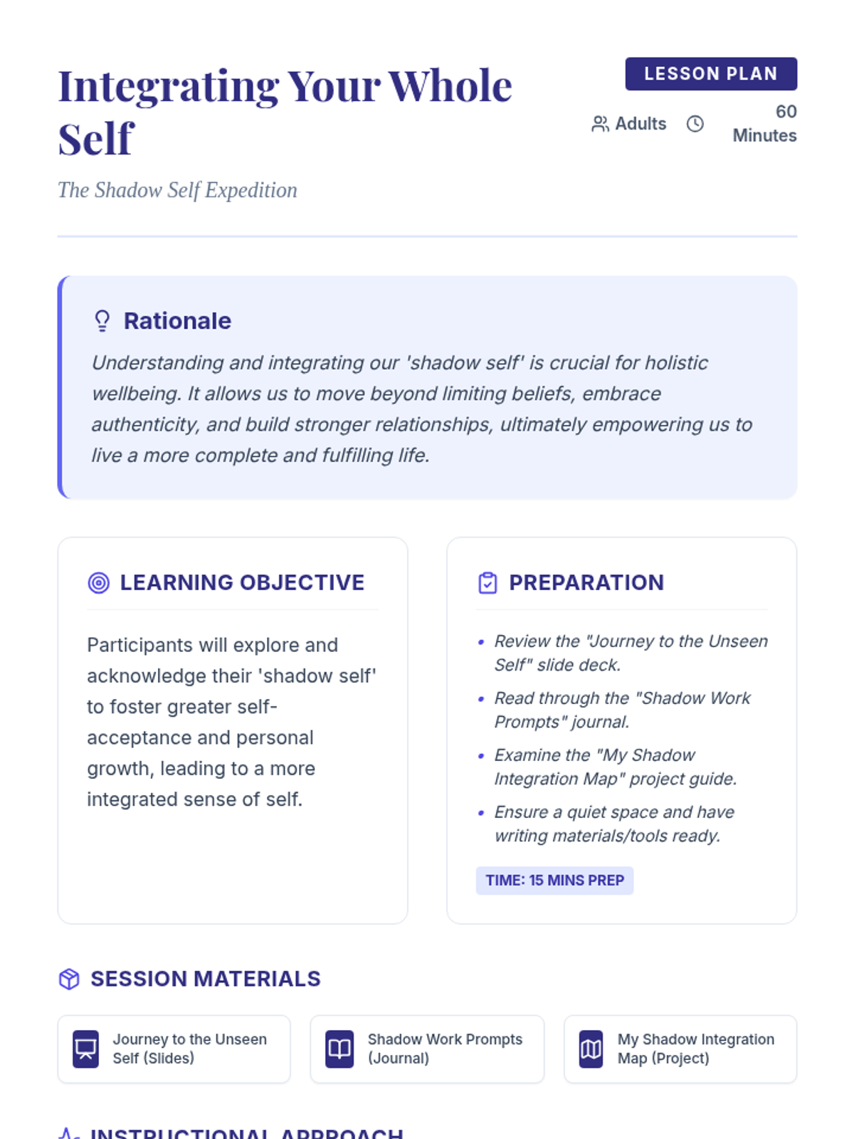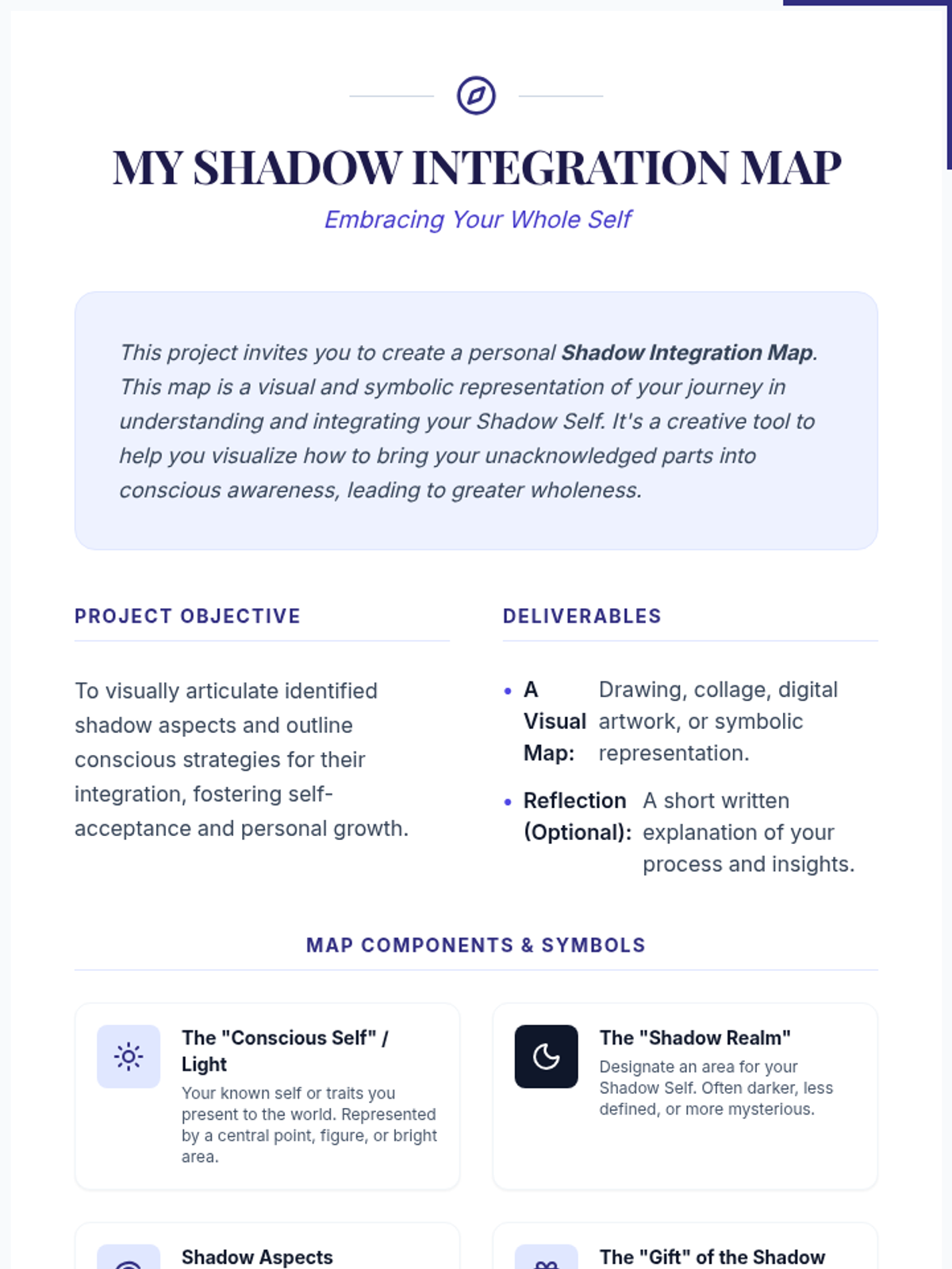 A transformative individual session for adults to explore their 'shadow self,' fostering self-acceptance and integration of hidden traits for deeper personal growth and wellbeing.