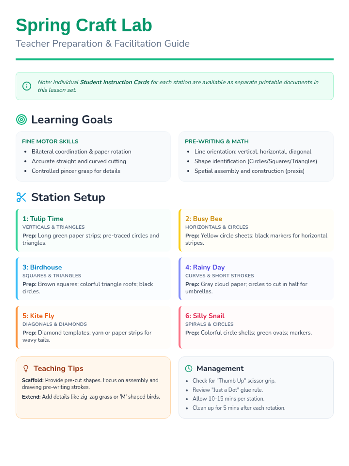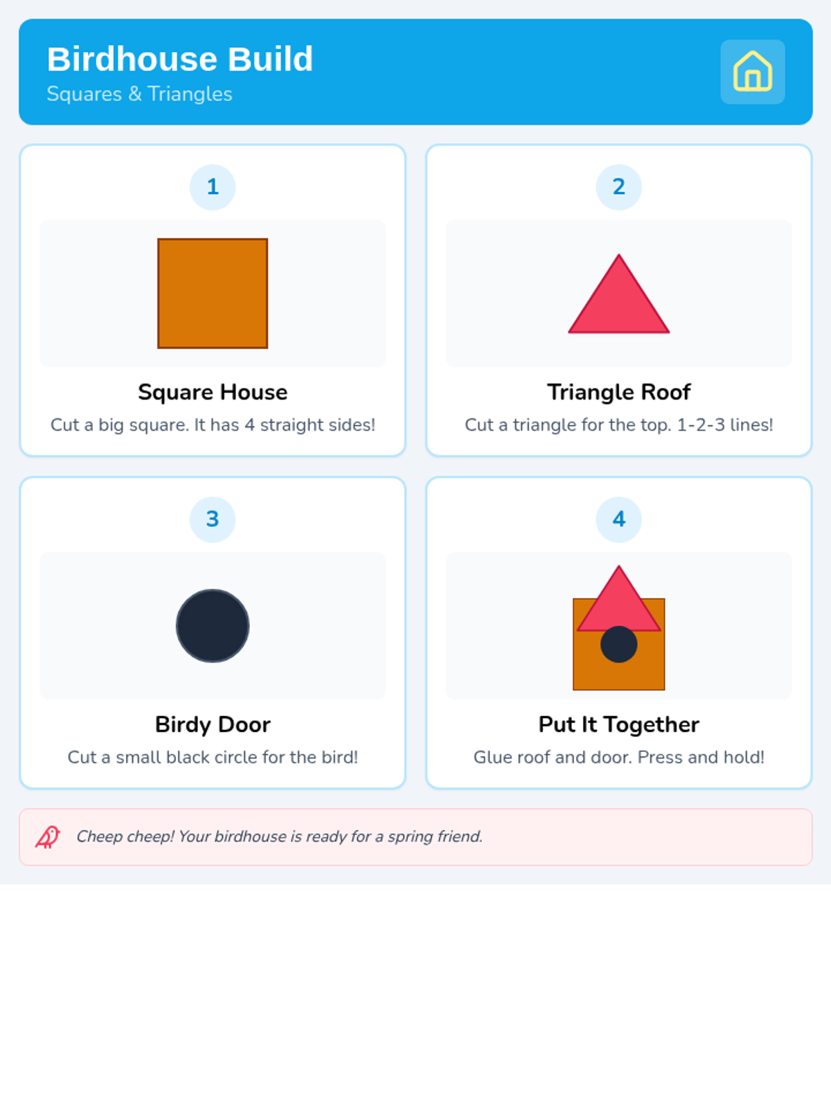 A kindergarten art and geometry lesson where students learn to construct human figures using five basic shapes: circles, triangles, squares, rectangles, and ovals.