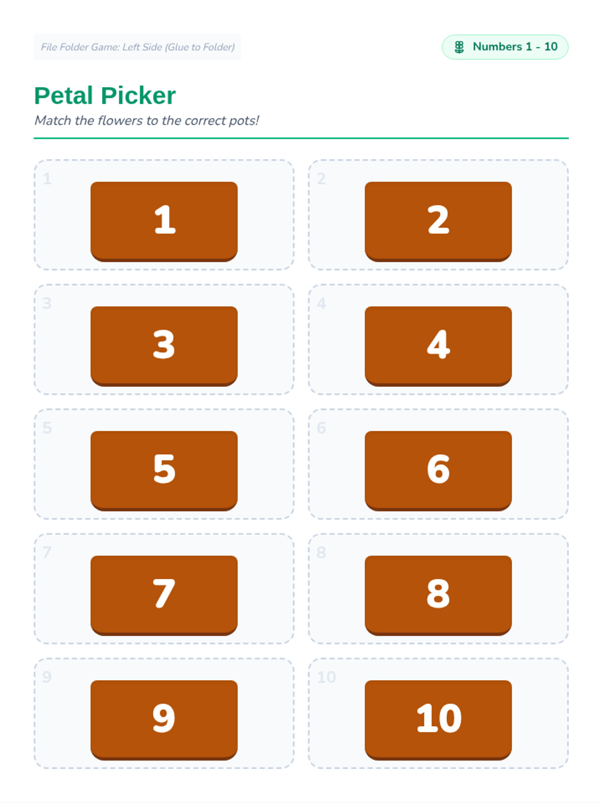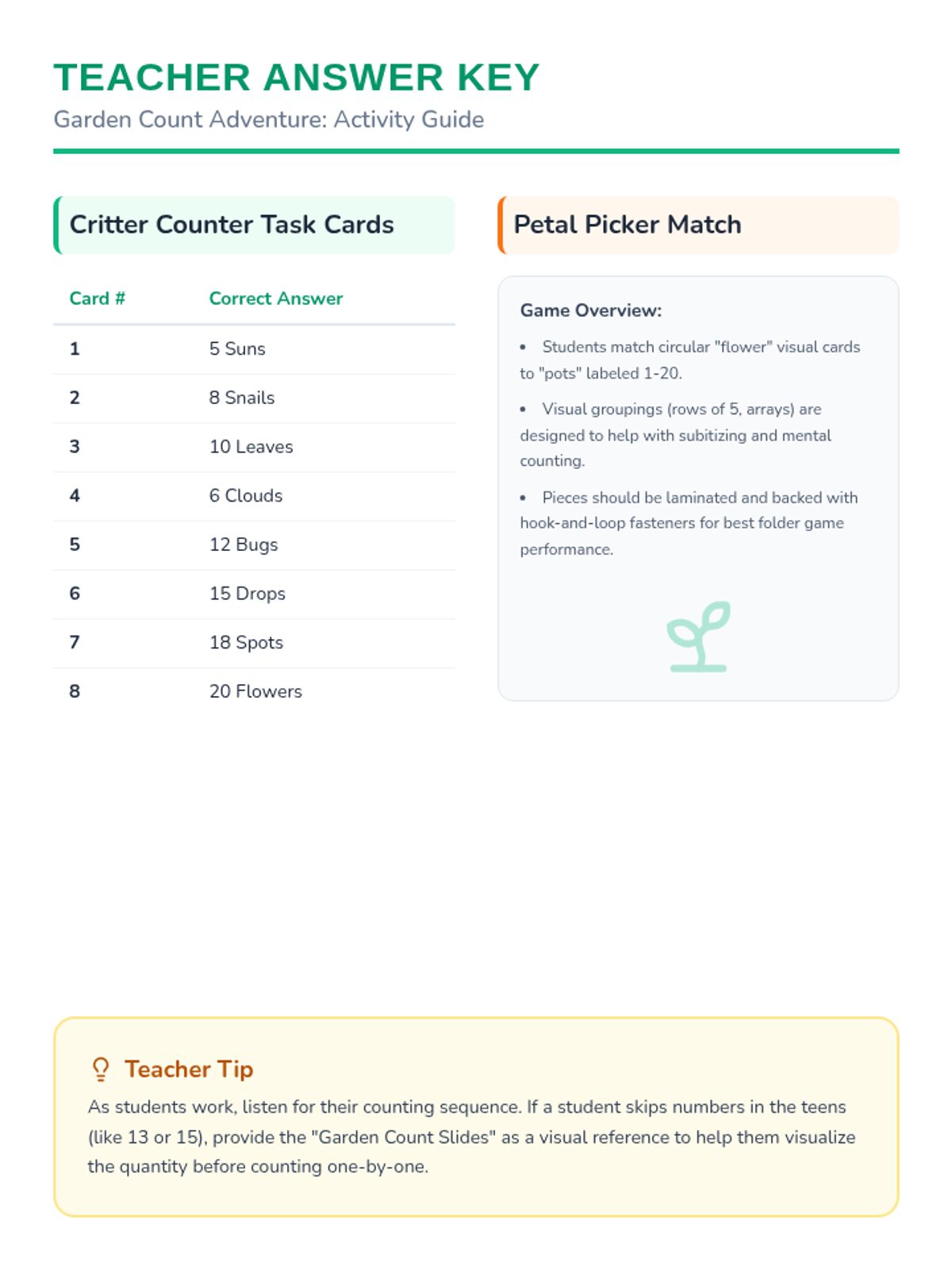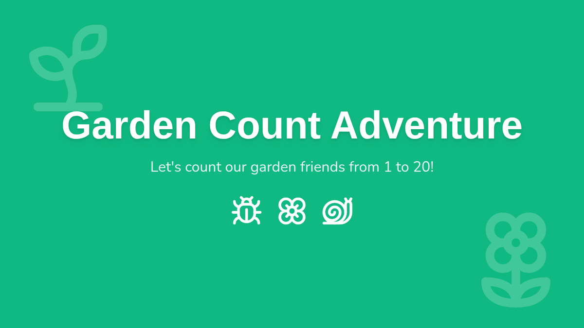 A hands-on counting unit where students explore garden-themed visuals to master numbers up to 20 through interactive slides, a file folder game, and task cards.