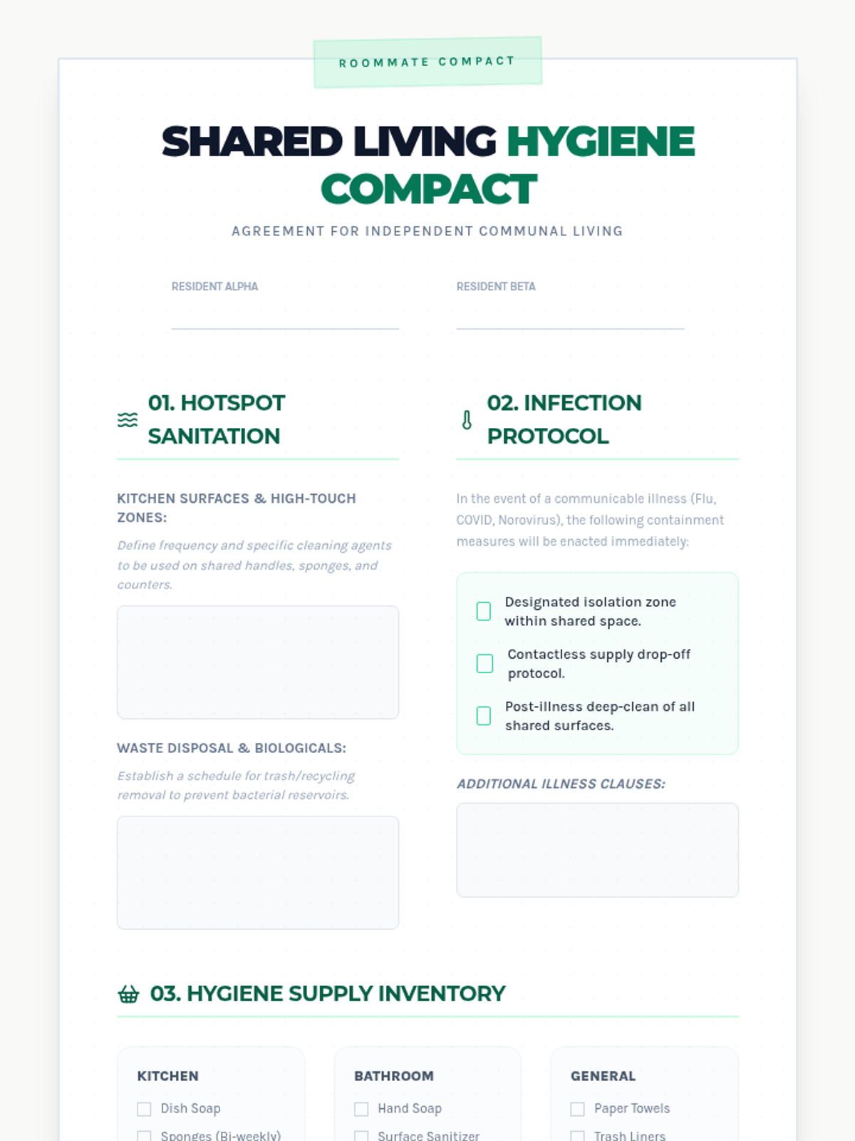 Focusing on the transition to independent living, students develop roommate agreements and protocols for maintaining hygiene in shared dorms or apartments.