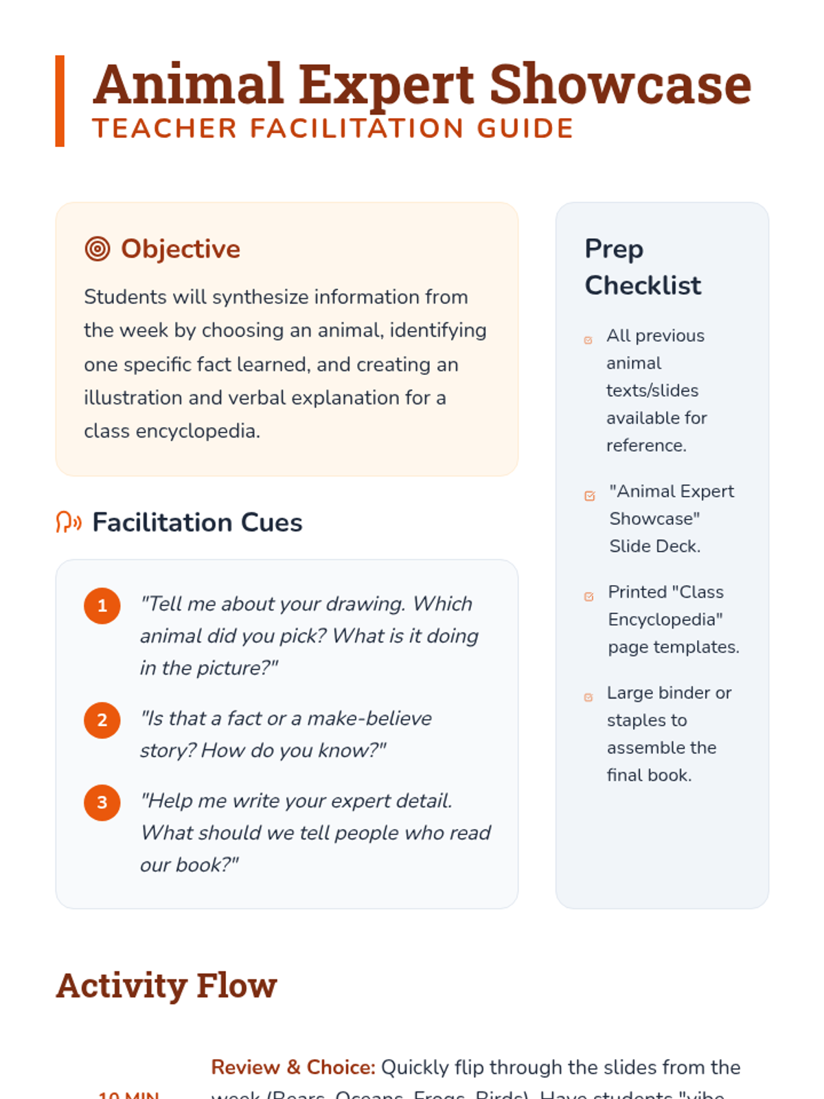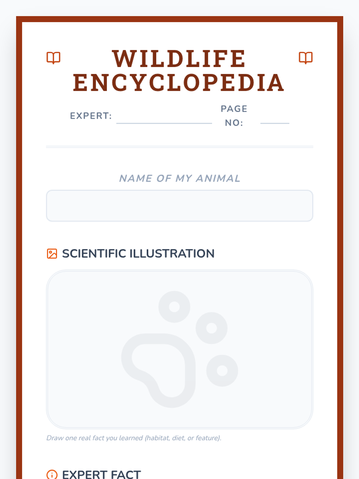 Students choose an animal they learned about to create a 'Class Encyclopedia' page, sharing one specific fact and illustration.