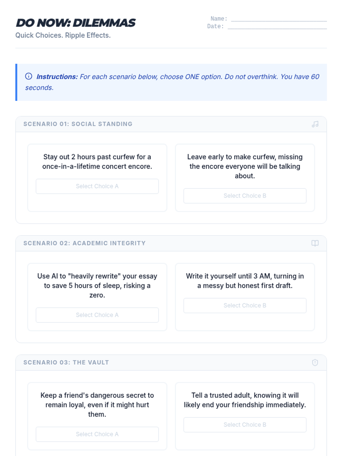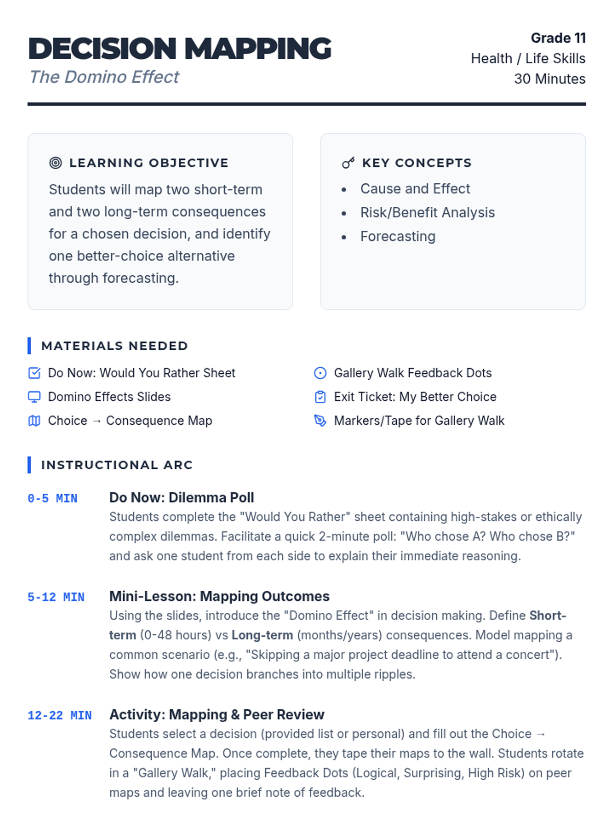 An 11th-grade lesson exploring the ripple effects of decisions, focusing on short-term vs. long-term consequences and strategic forecasting.