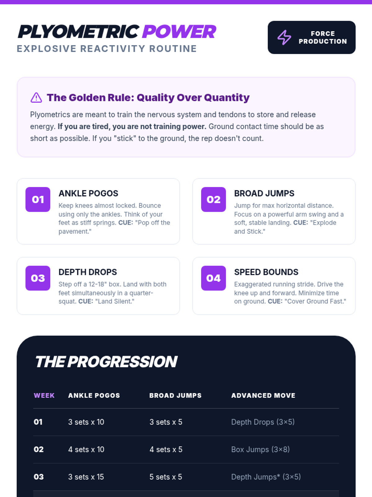 Introducing the drive phase, explosive wall drills, and higher-intensity plyometrics to build raw power.
