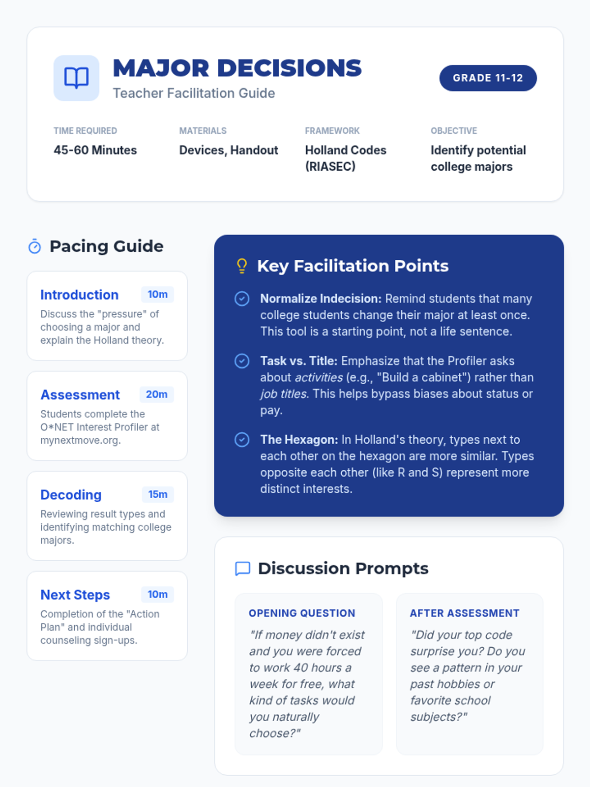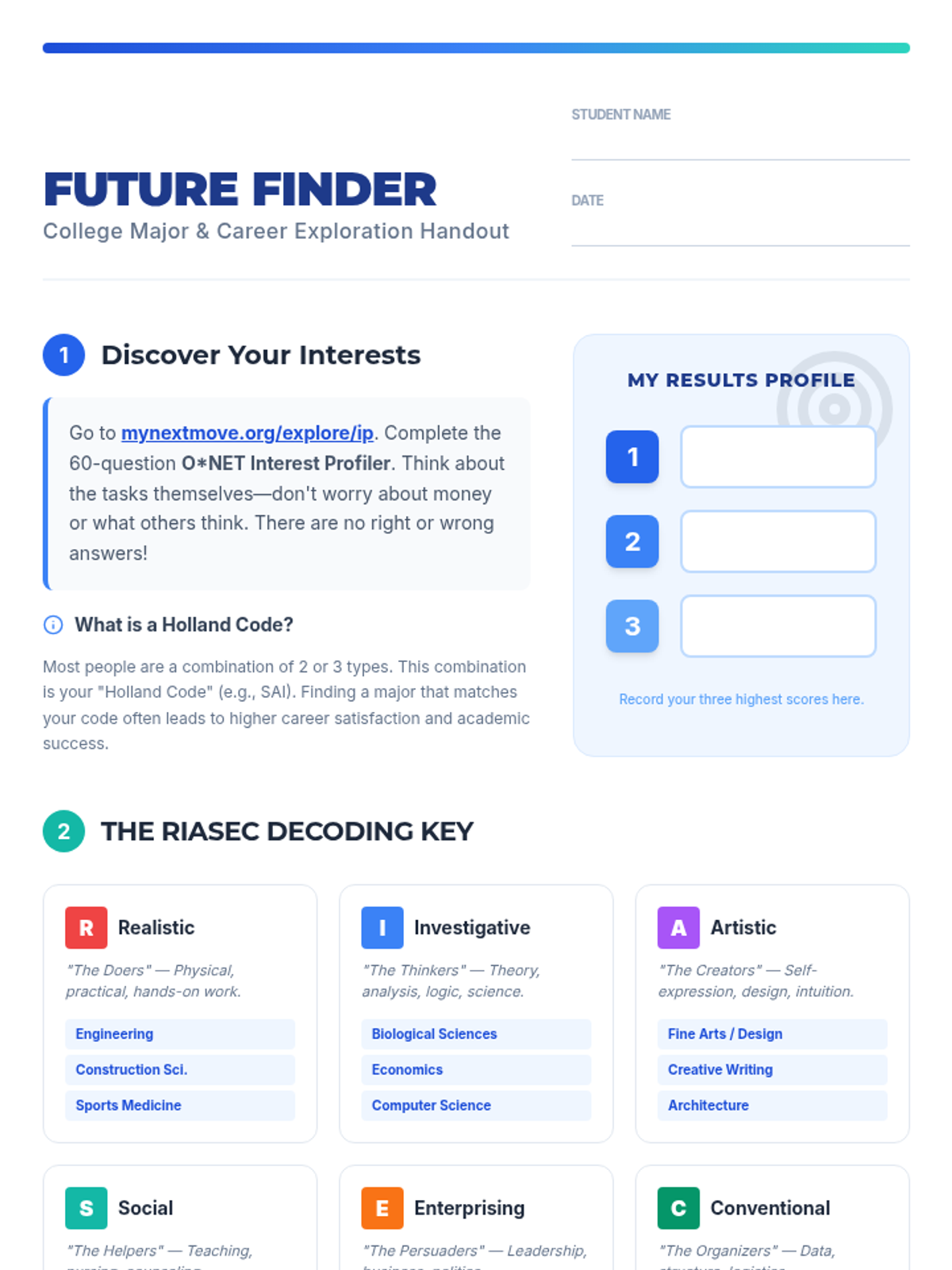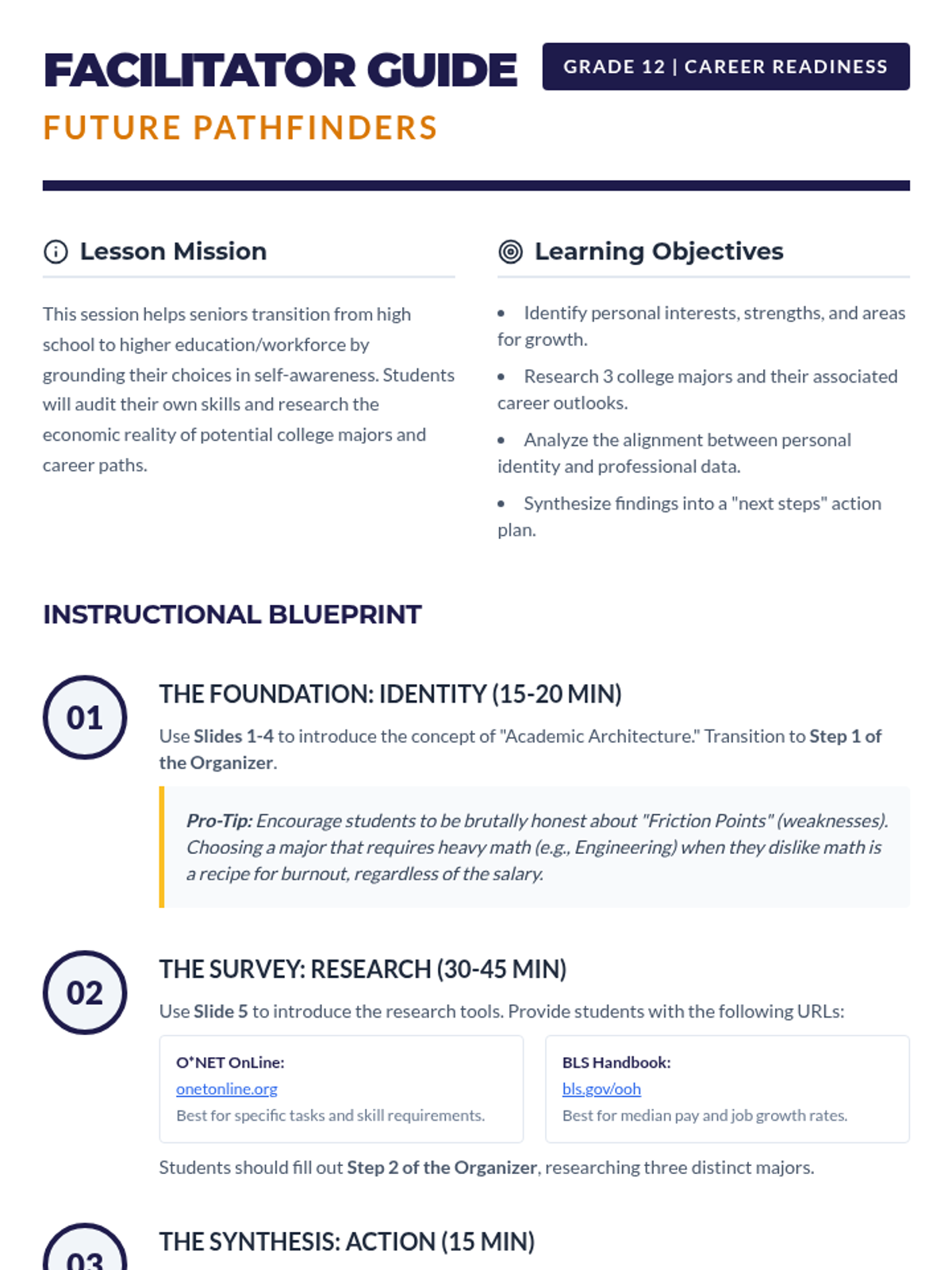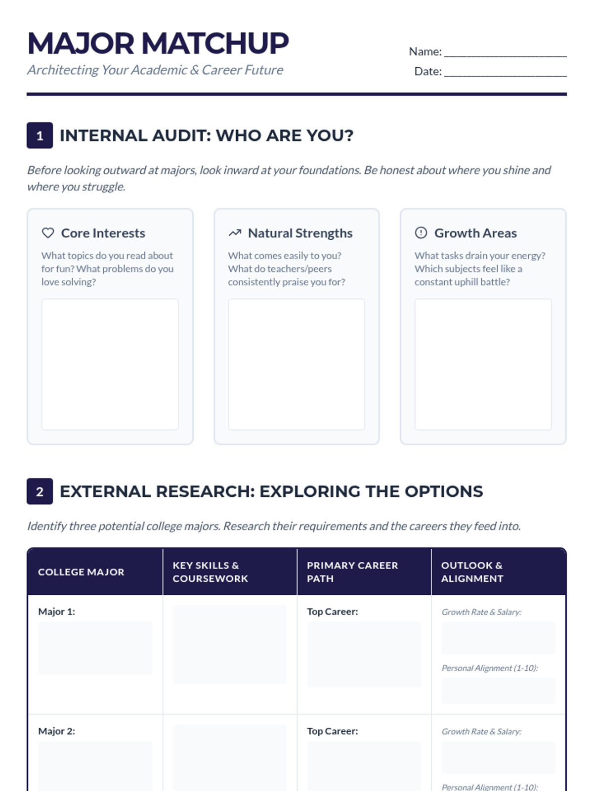 A comprehensive toolkit designed to help 12th-grade students bridge the gap between their personal identity and their professional future through structured self-reflection and career research.