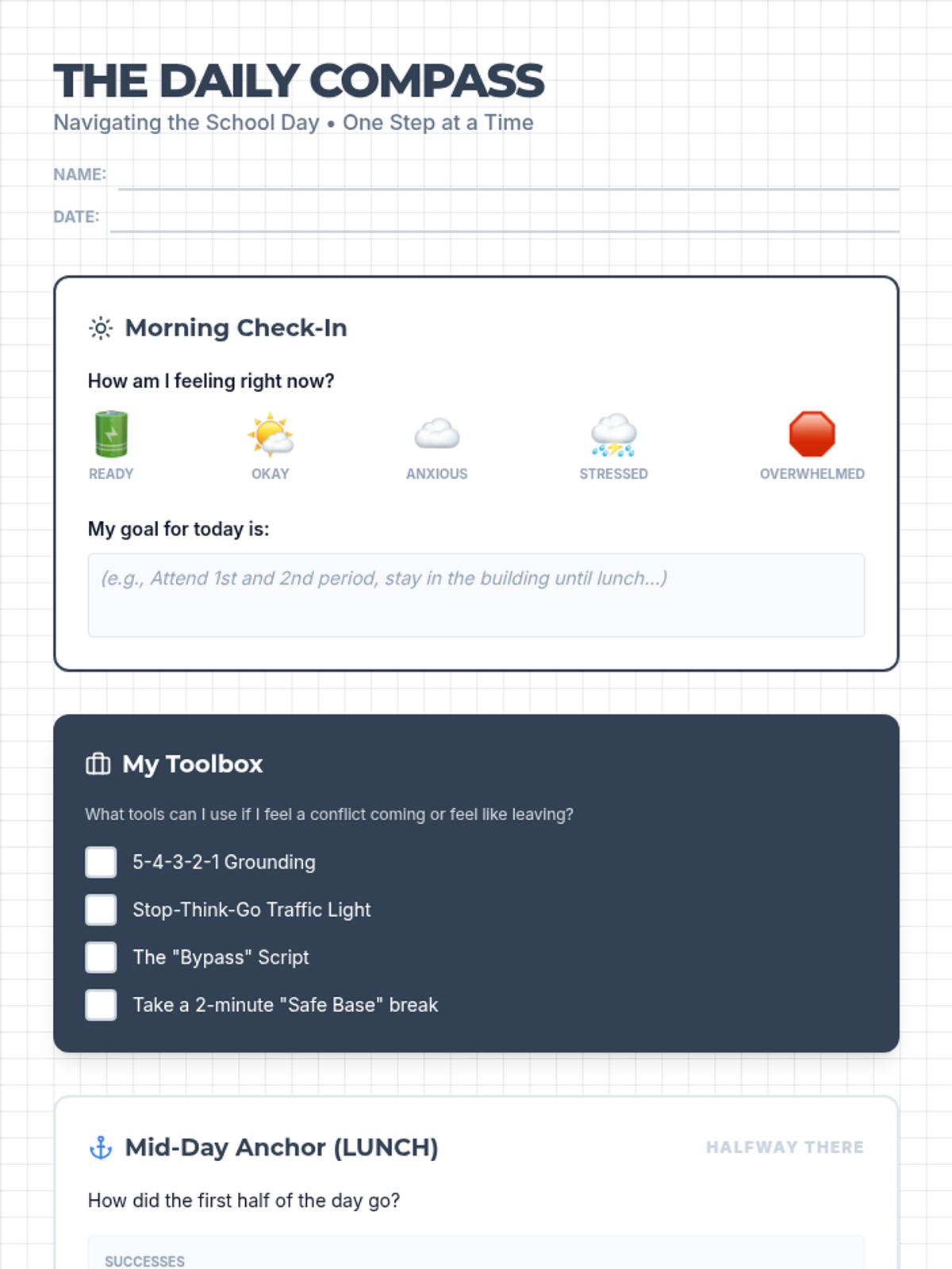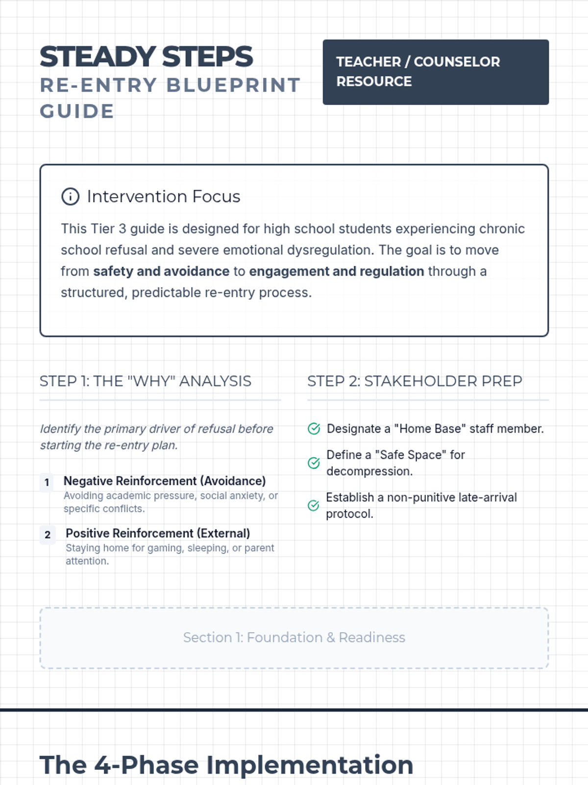 Focuses on the immediate transition back into the school building, establishing safe routines, and introducing core emotional regulation tools for managing conflict.