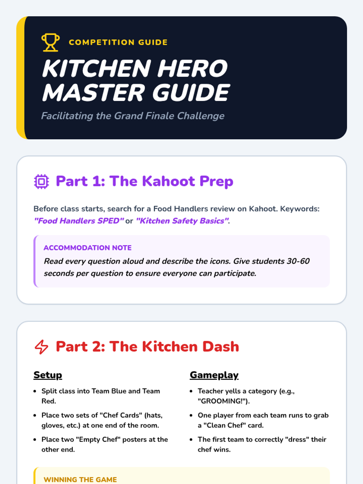 A culminating session featuring a class-wide Kahoot review and a competitive classroom game to test knowledge.