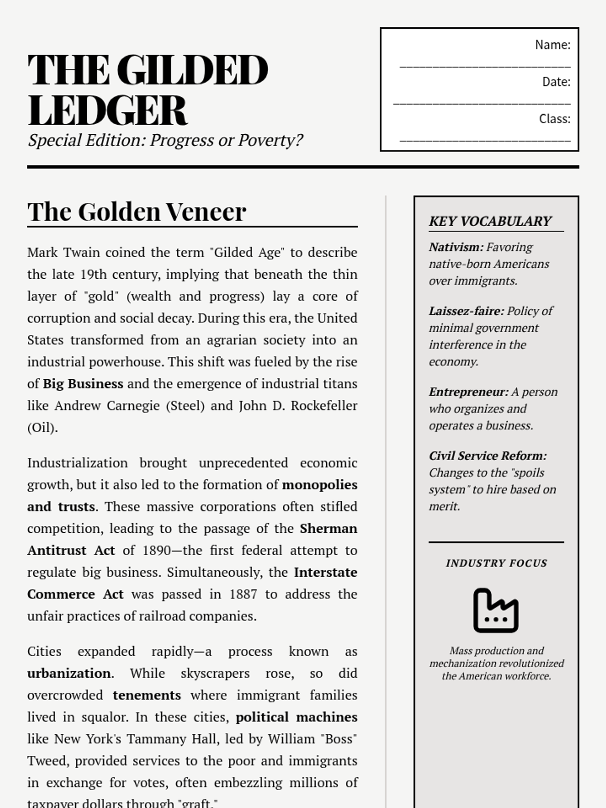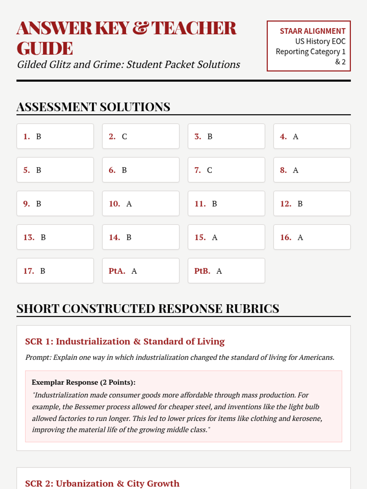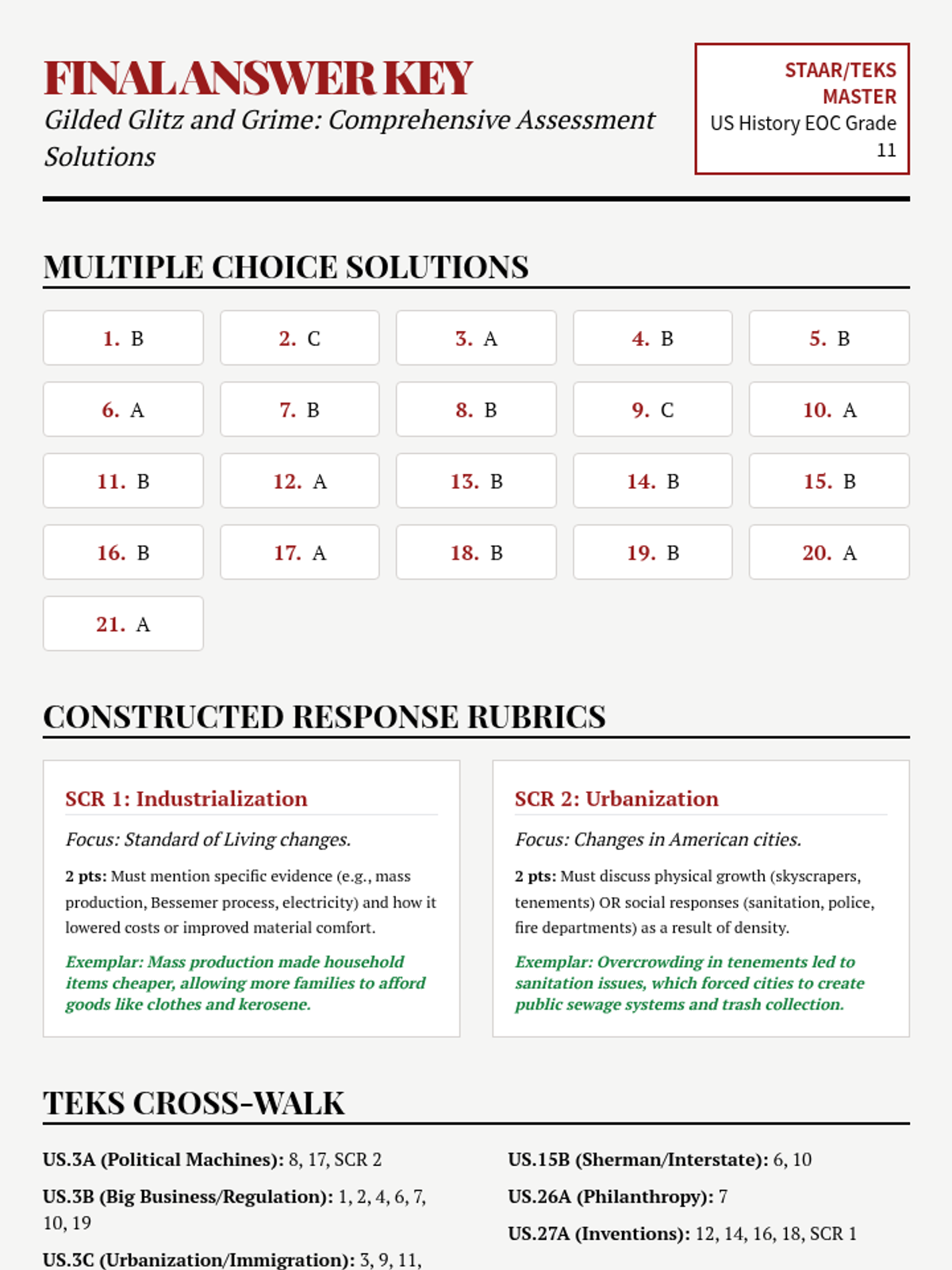 A comprehensive lesson on the Gilded Age tailored for Texas US History students, featuring a deep dive into industrialization, urbanization, and political corruption with STAAR-aligned assessment items.