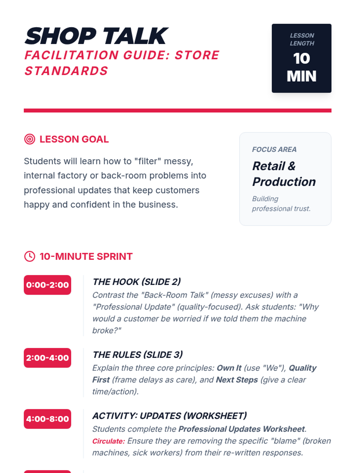 A concise 15-minute introduction to classroom norms centered on the core values of Respect, Integrity, and Safety. Students will define these values and commit to a shared culture of success.
