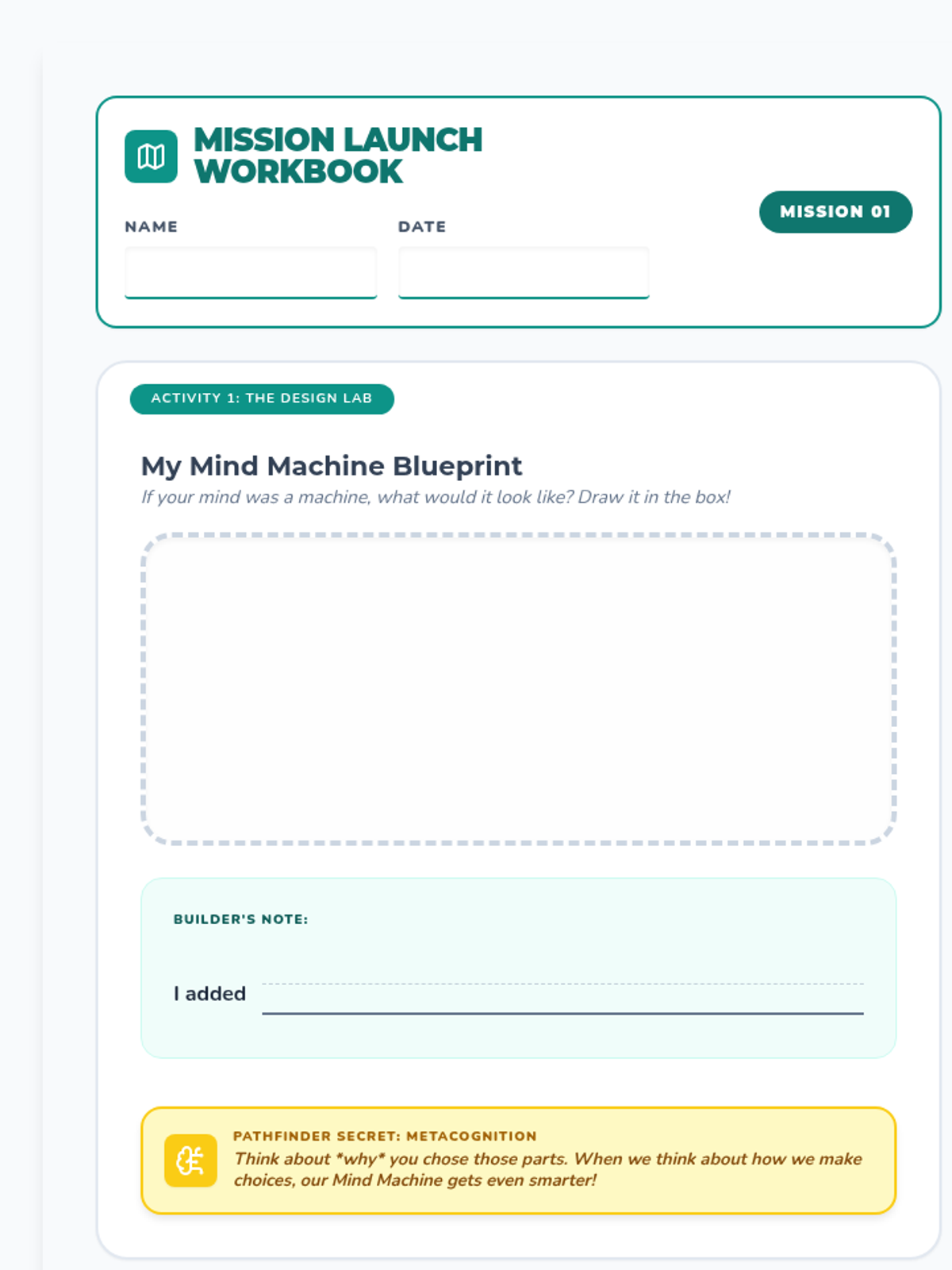 An introductory lesson where students become 'Pathfinders,' learning that their minds are like incredible machines with gears they can control. Focuses on self-awareness and the basics of how we decode stories.