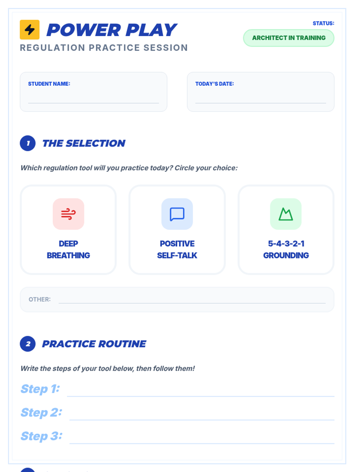 A culminating mission simulation where students apply all self-regulation skills in a team-based game environment.