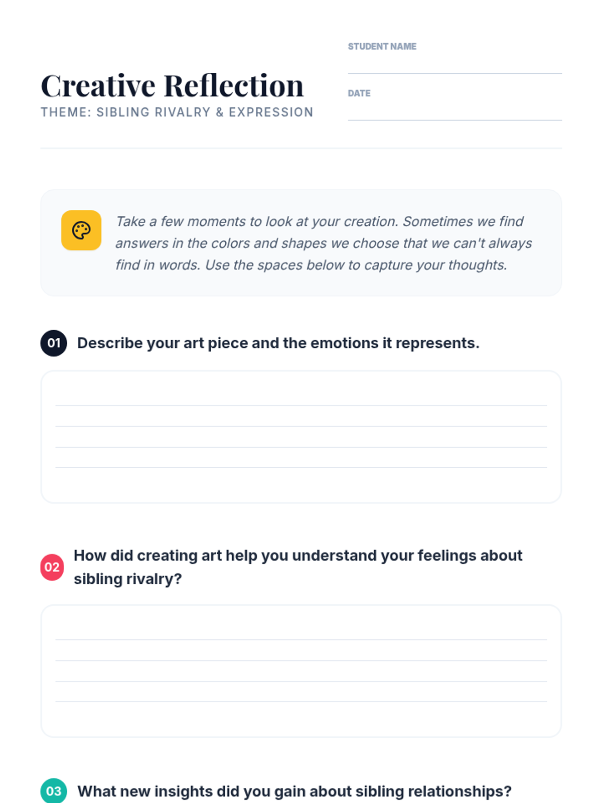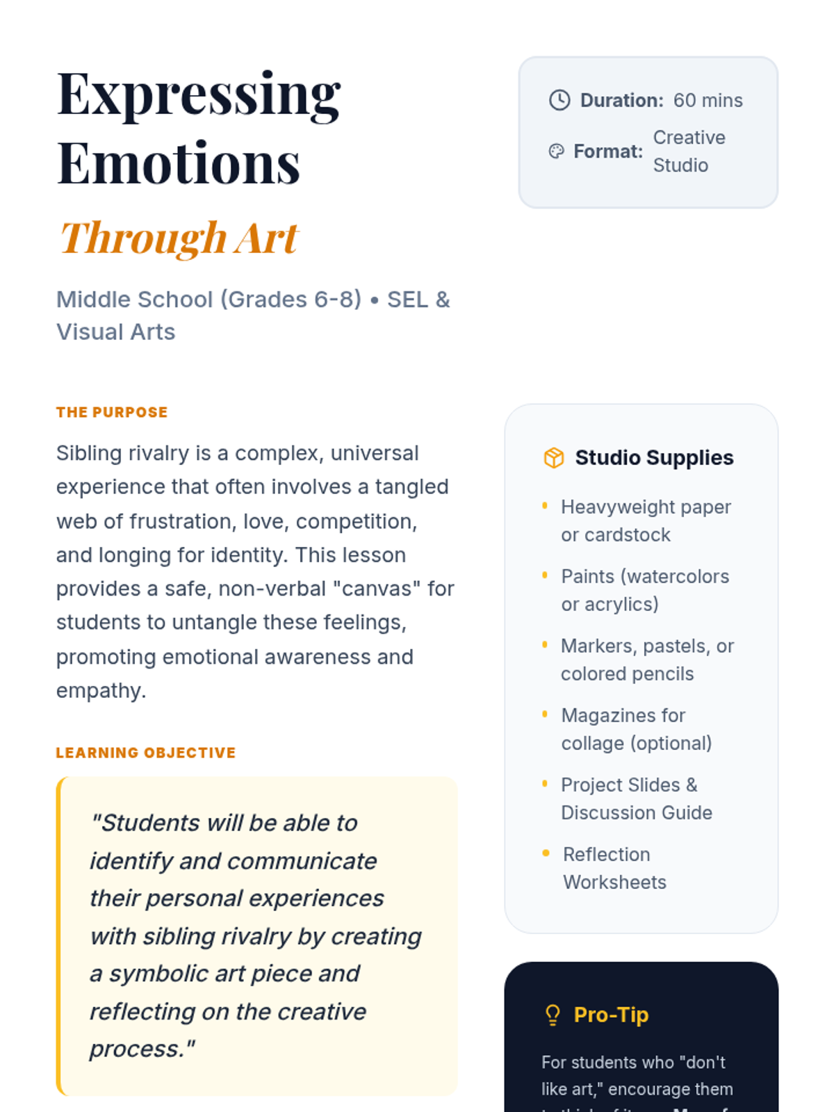 A creative arts-based social-emotional learning lesson where middle schoolers use visual art to navigate and express the complex emotions surrounding sibling rivalry.