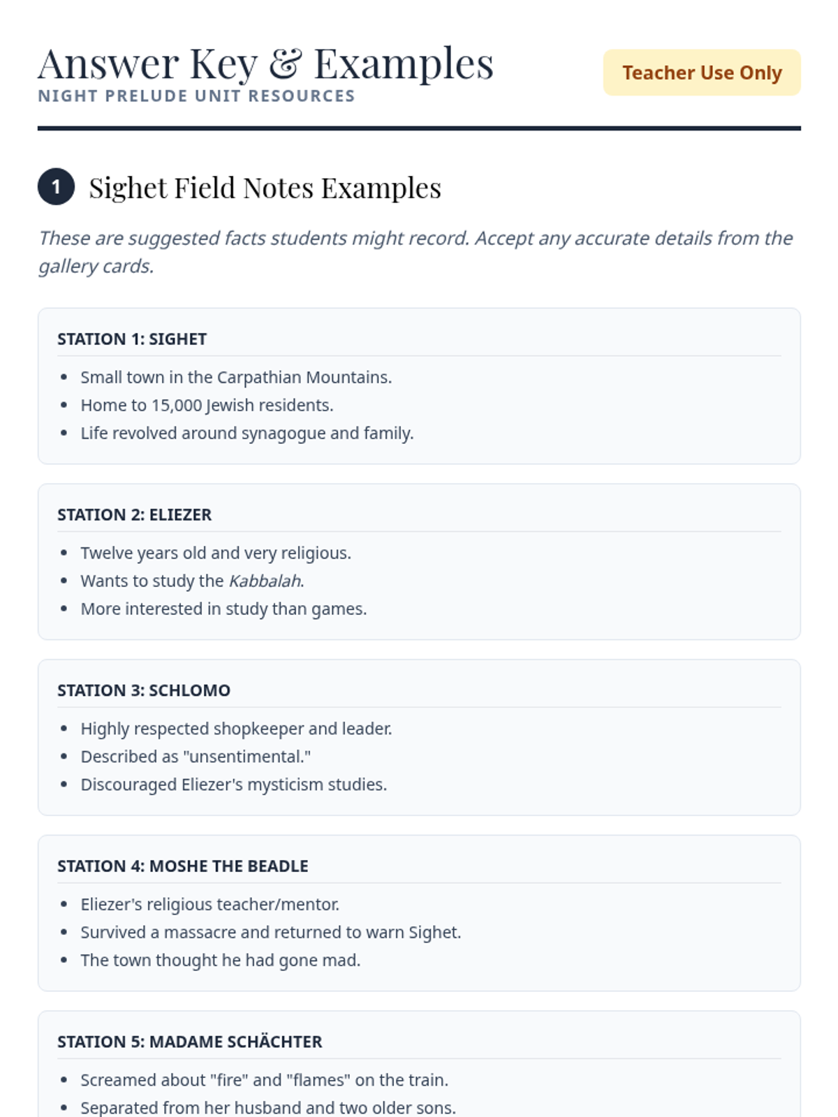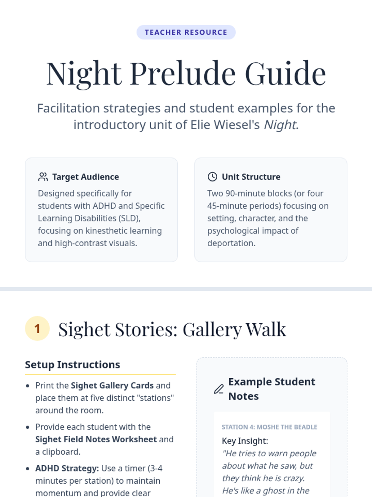 Introduction to the setting of Sighet and the key figures in Eliezer's life before the Holocaust, using a movement-based gallery walk to engage students with ADHD/SLD.