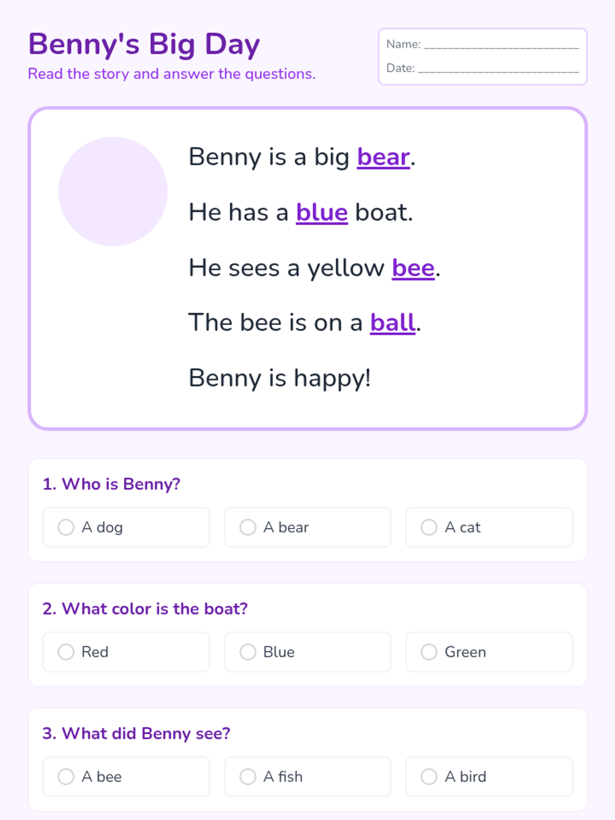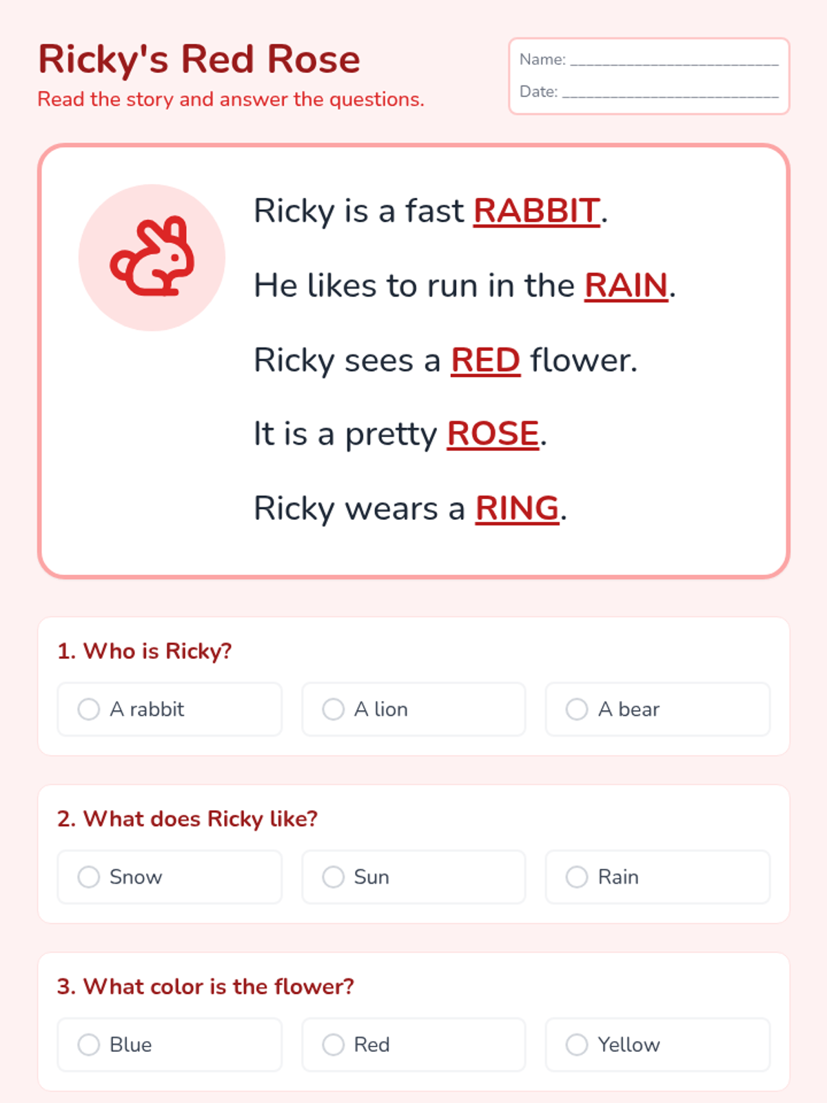 A foundational phonics lesson focusing on r-controlled vowels (ar, er, ir, or, ur) through a farm-themed reading adventure. Students will identify and decode 'bossy r' words in context.