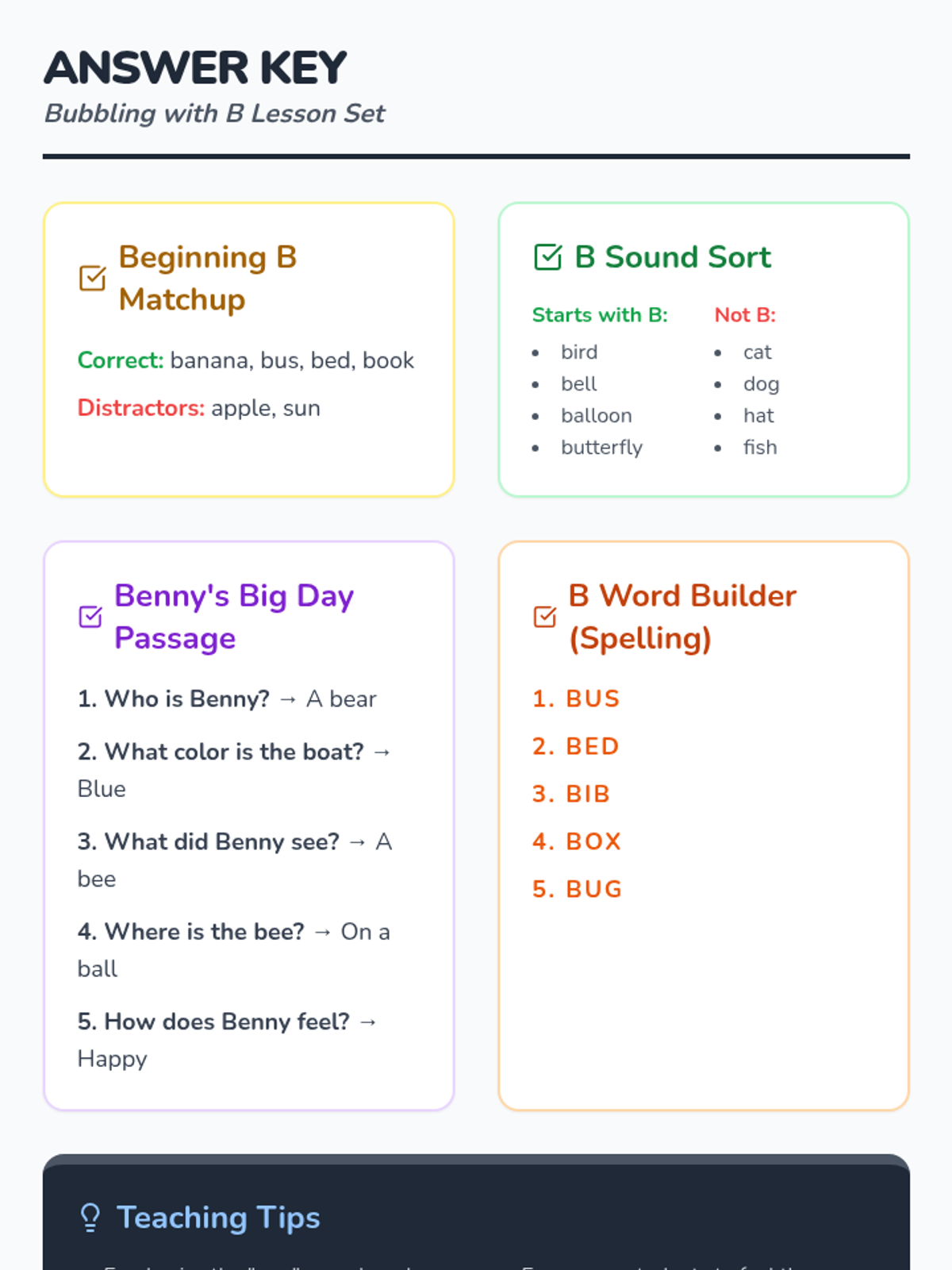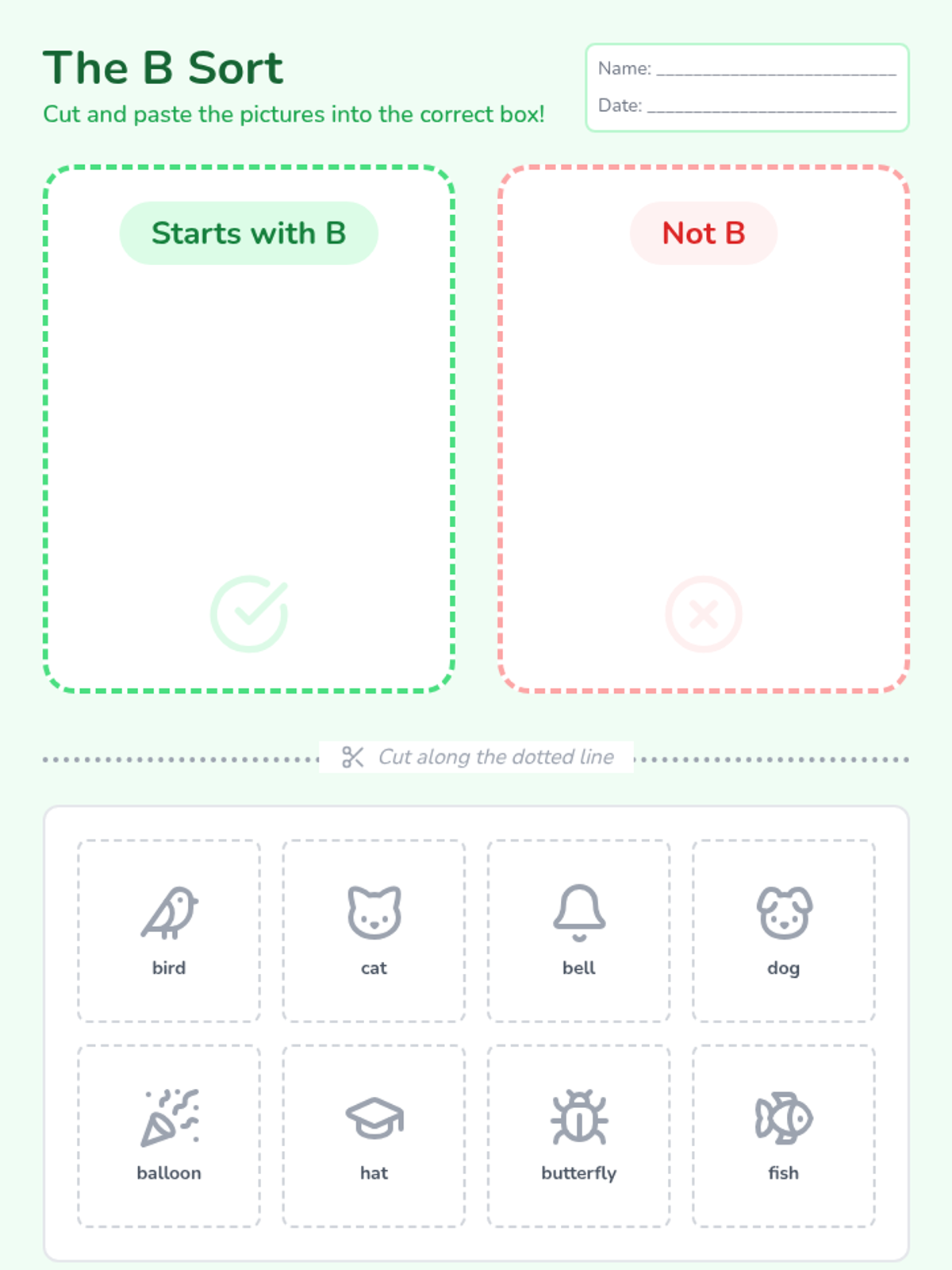 A collection of engaging worksheets for kindergarten students to master the letter 'B' beginning sound through coloring, matching, sorting, and reading.