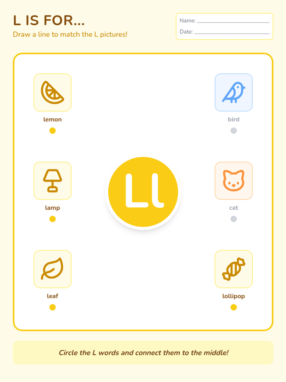 A collection of engaging worksheets for kindergarten students to master the letter 'L' beginning sound through coloring, matching, sorting, and reading.