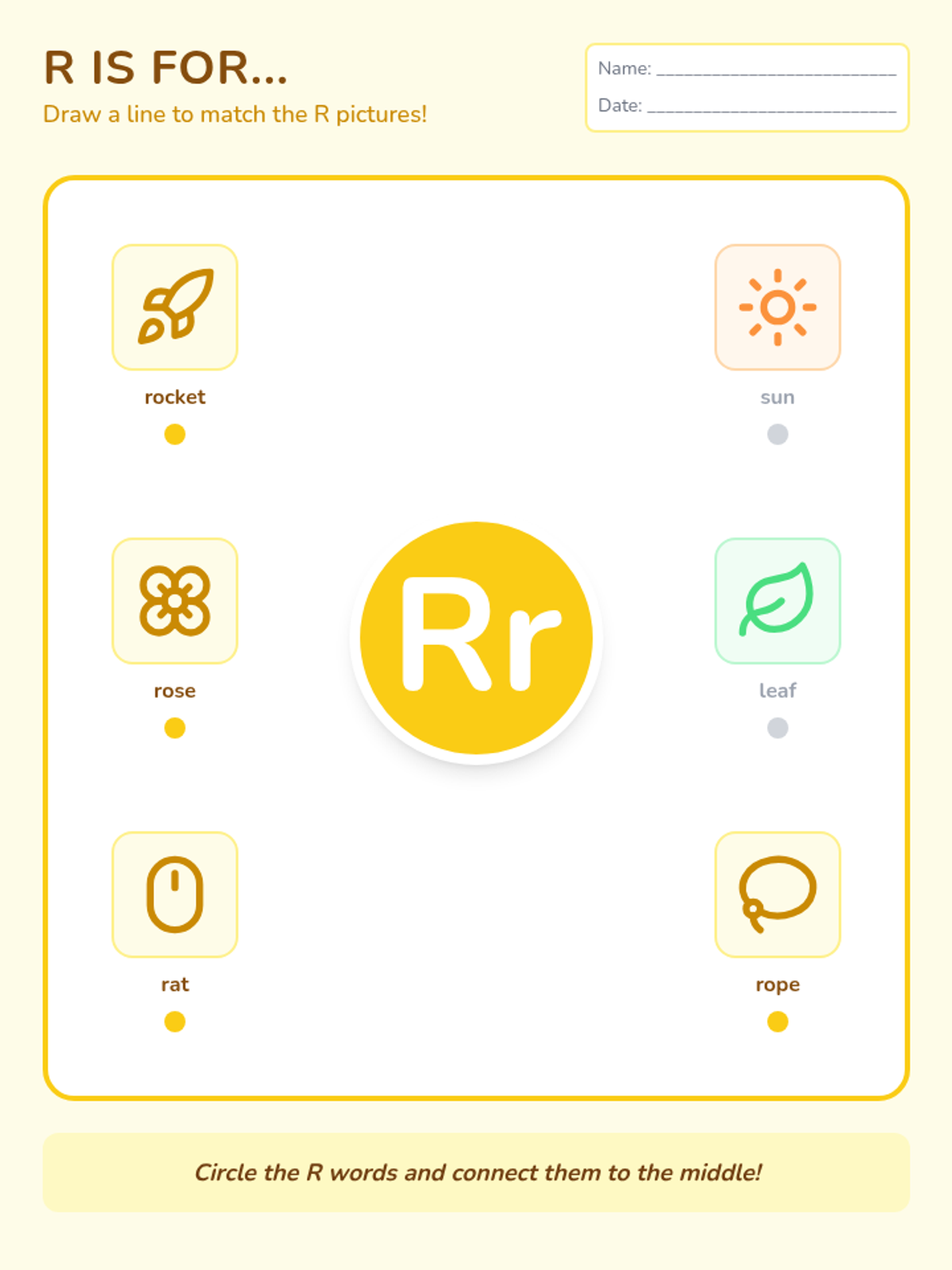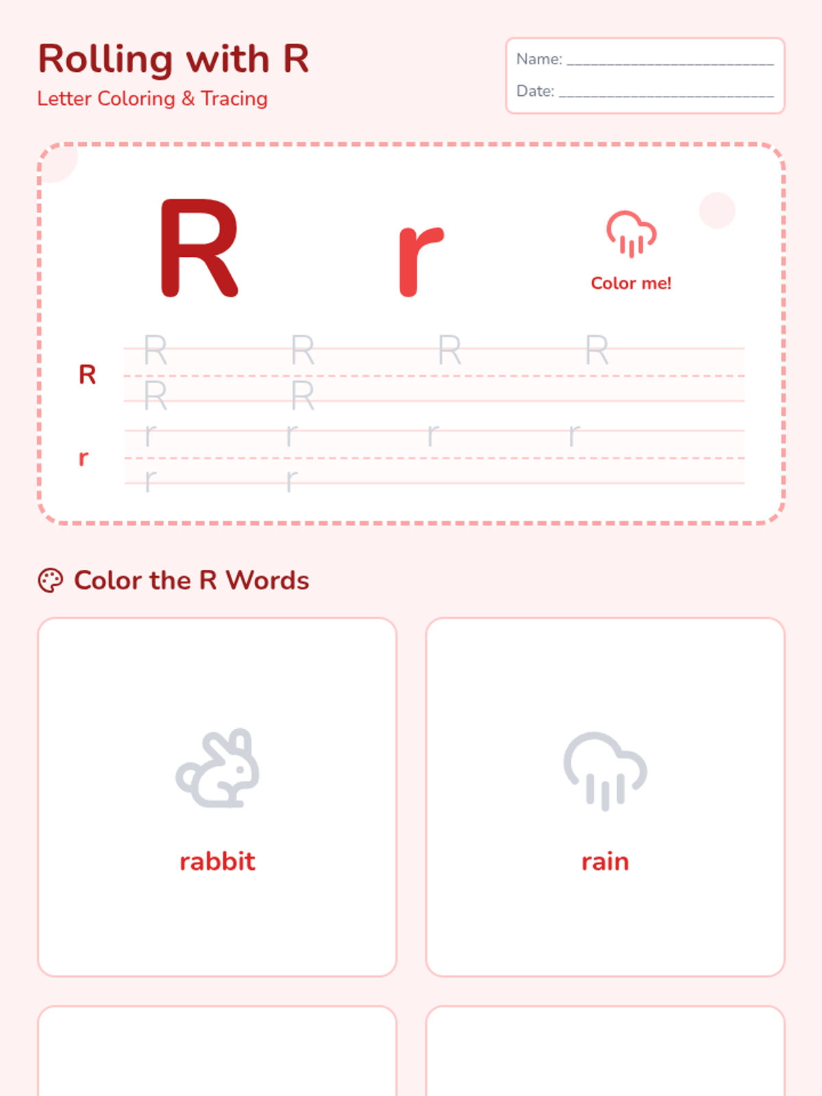 A collection of engaging worksheets for kindergarten students to master the letter 'R' beginning sound through coloring, matching, sorting, and reading.