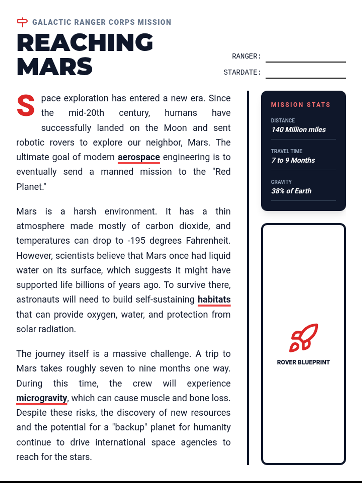 A 4th grade deep dive into the history of space travel and the future of Mars exploration, focusing on detailed analysis and critical thinking.