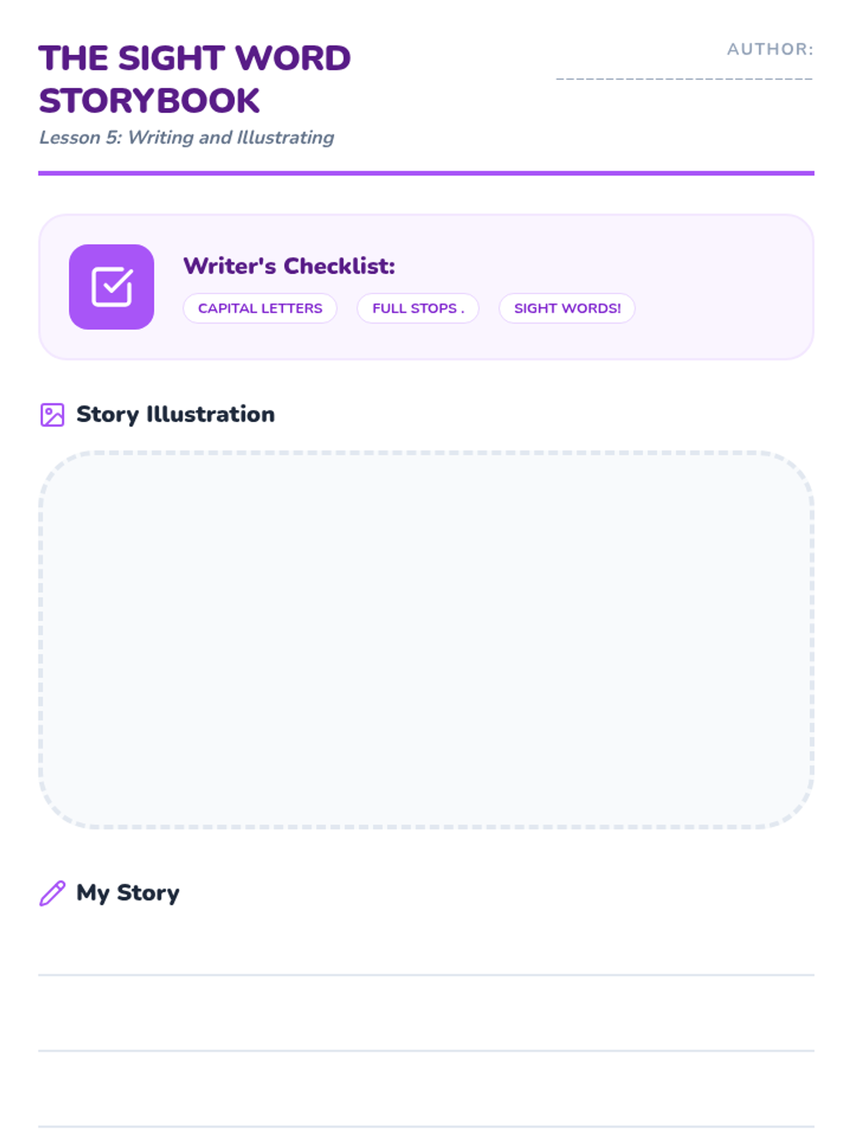 Students collaboratively write and illustrate a short story incorporating the target sight words.