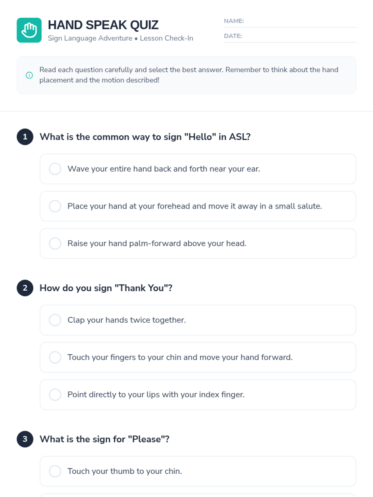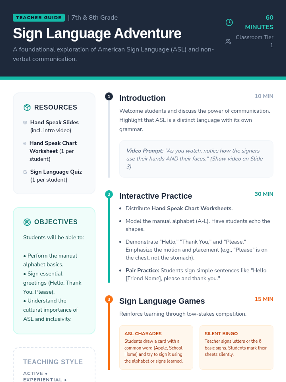 Students discover the power of non-verbal communication through American Sign Language (ASL) basics. This lesson covers the manual alphabet, essential greetings, and etiquette through interactive practice and video instruction.