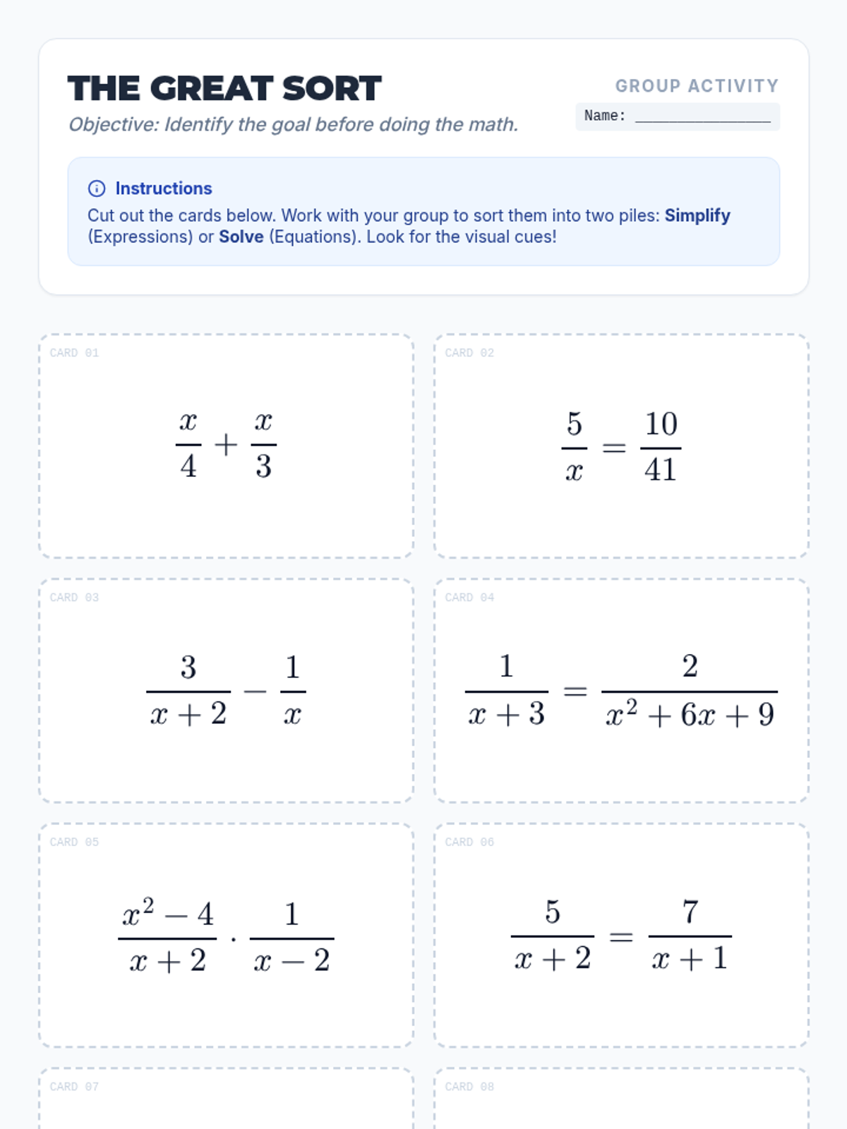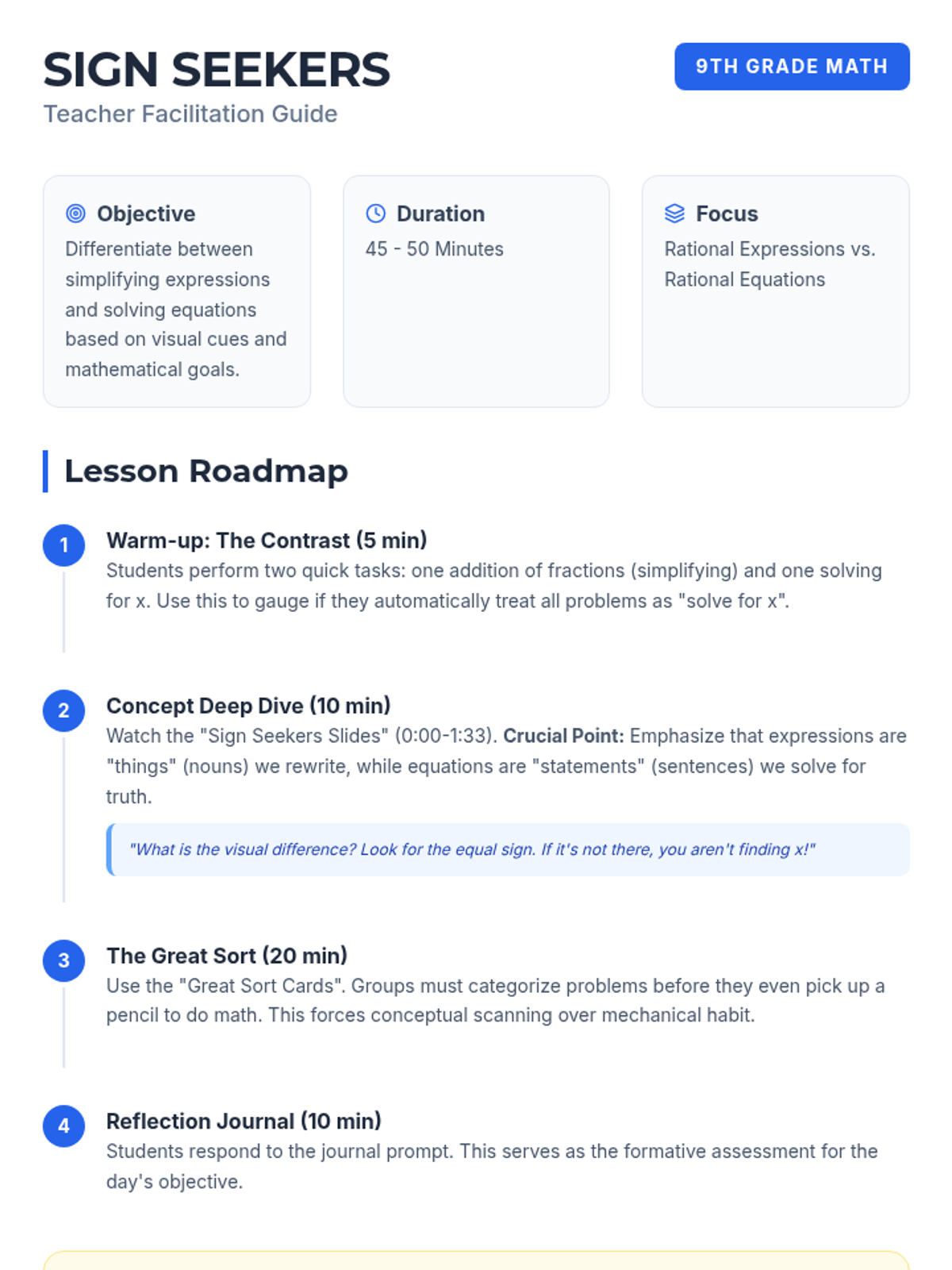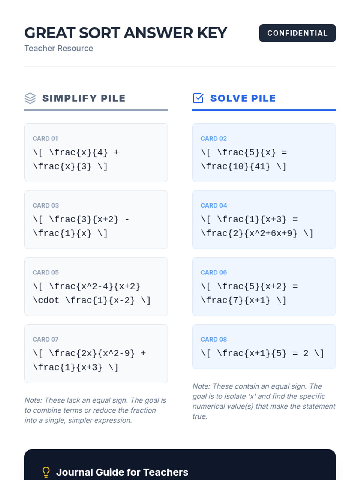 A conceptual deep-dive into the fundamental difference between simplifying rational expressions and solving rational equations, centered around the visual and logical role of the equal sign.