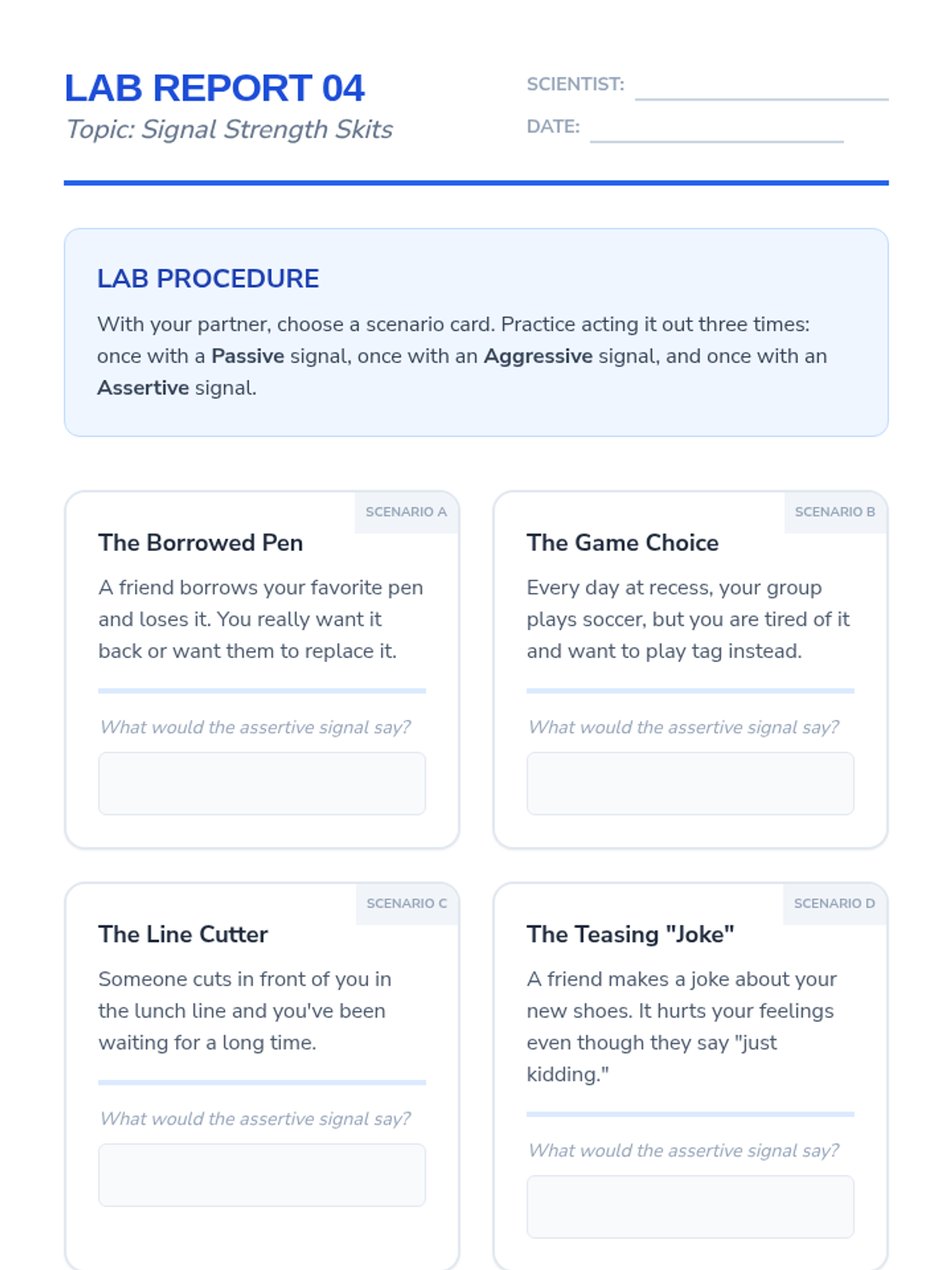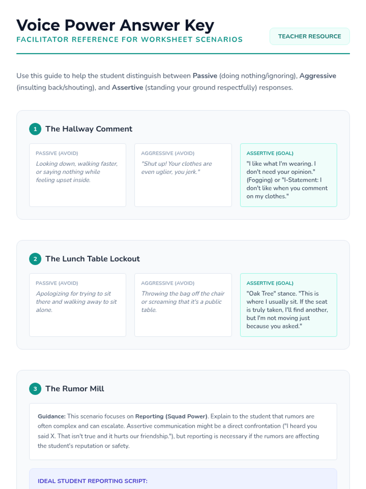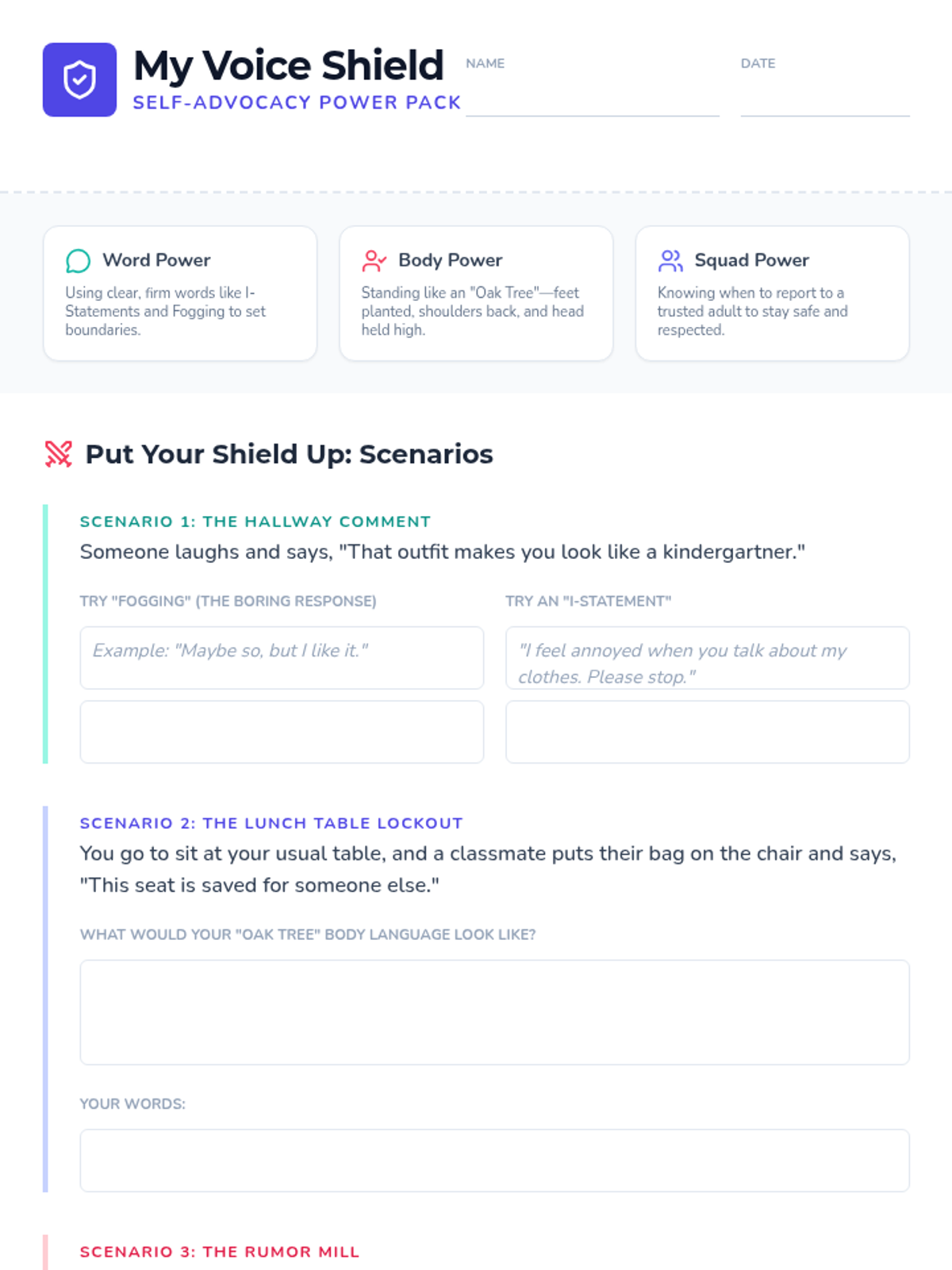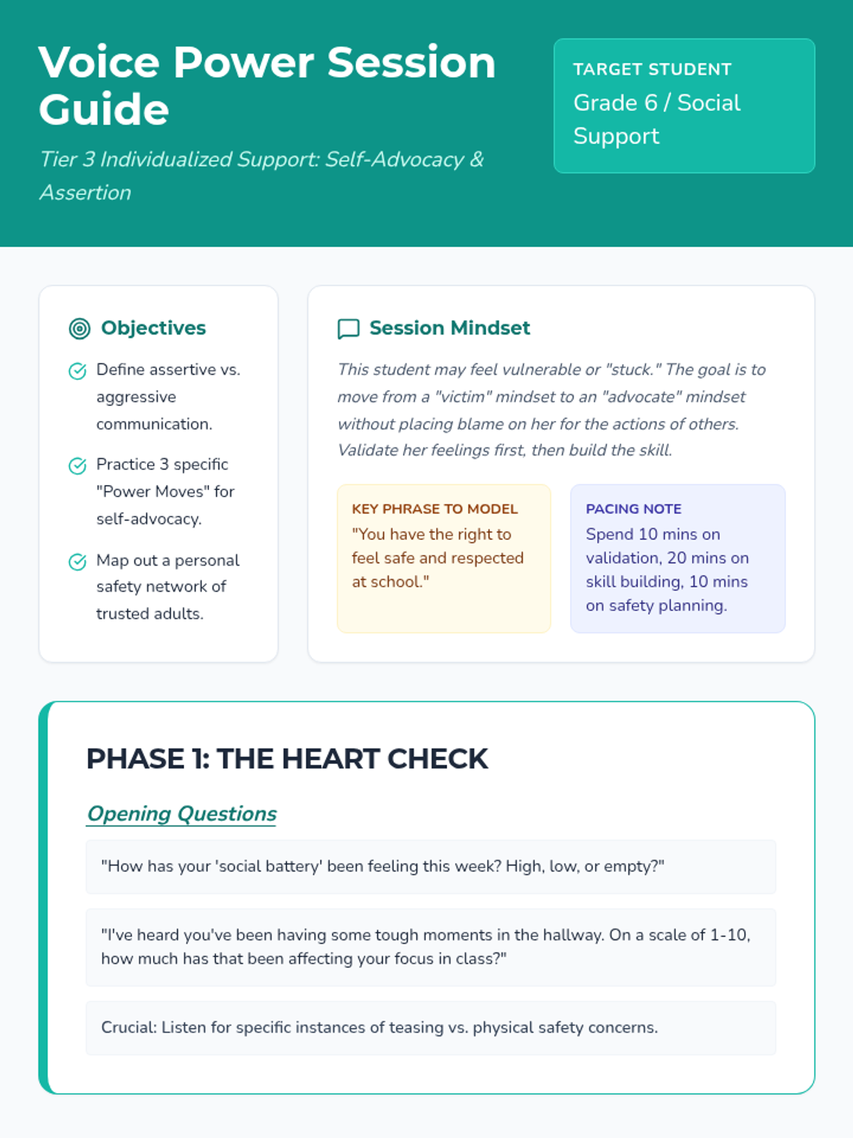 A Tier 3 intensive counseling lesson designed to empower students with assertive communication skills and self-advocacy strategies to navigate social conflict and bullying.