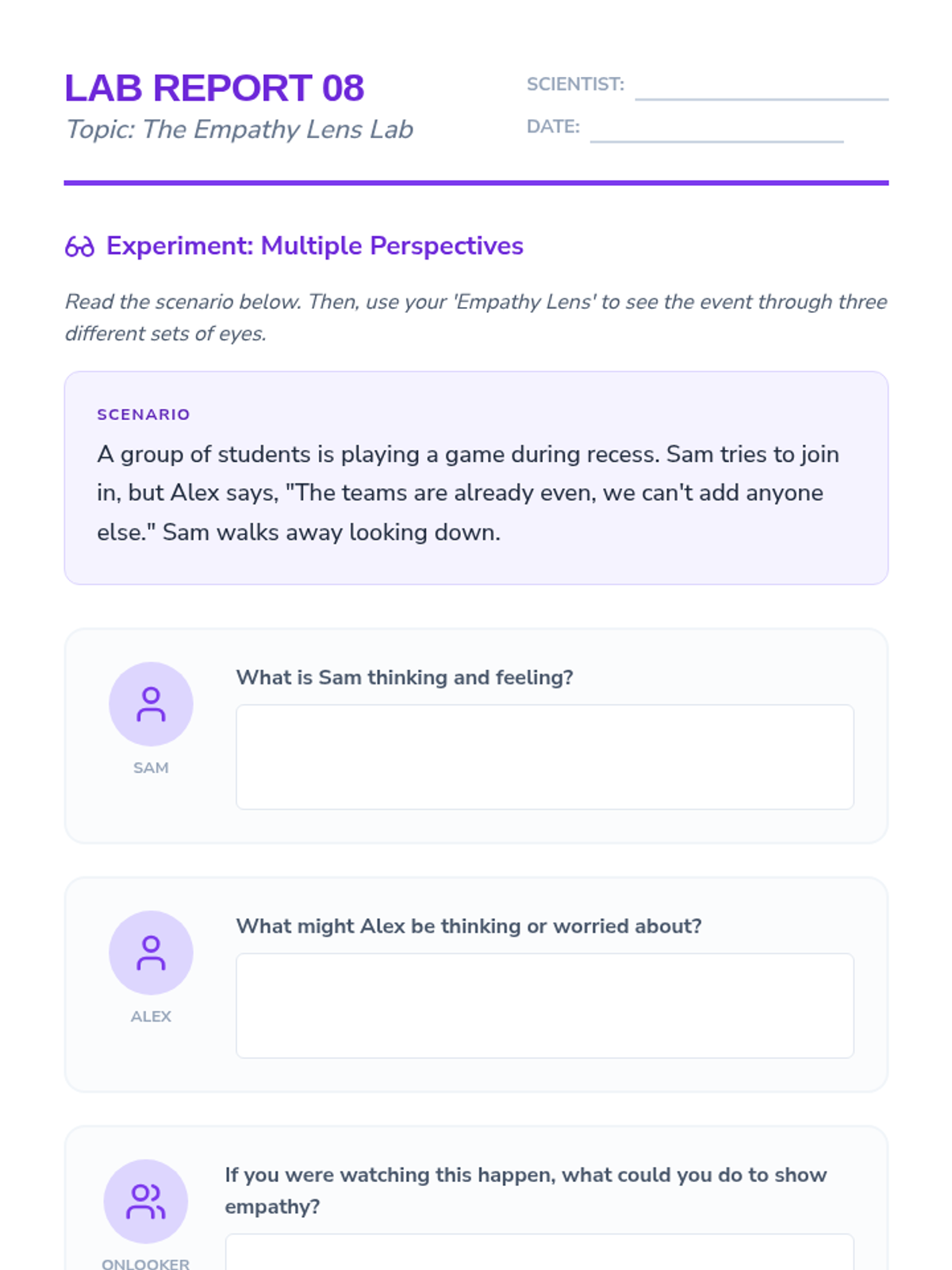 Developing perspective-taking skills to understand others' feelings and experiences.