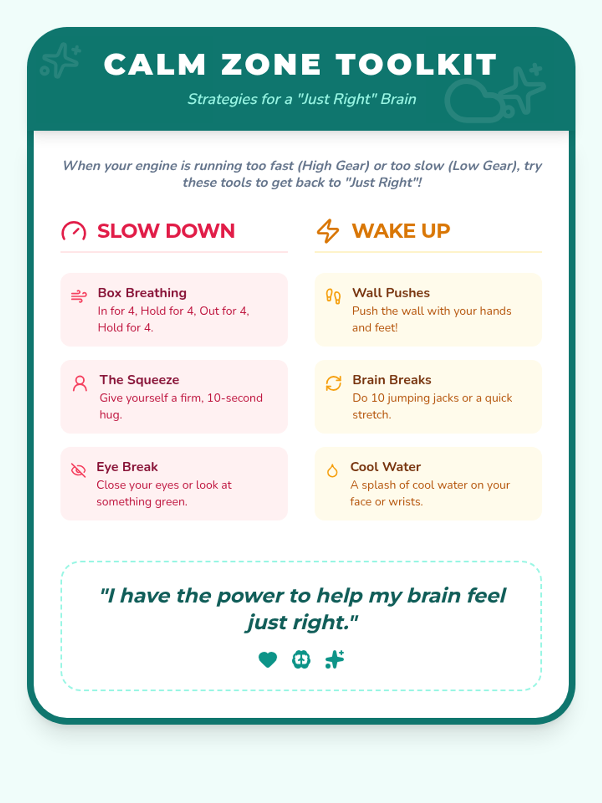A collection of tools and strategies to help students regulate their emotions and find their center during moments of stress or frustration.