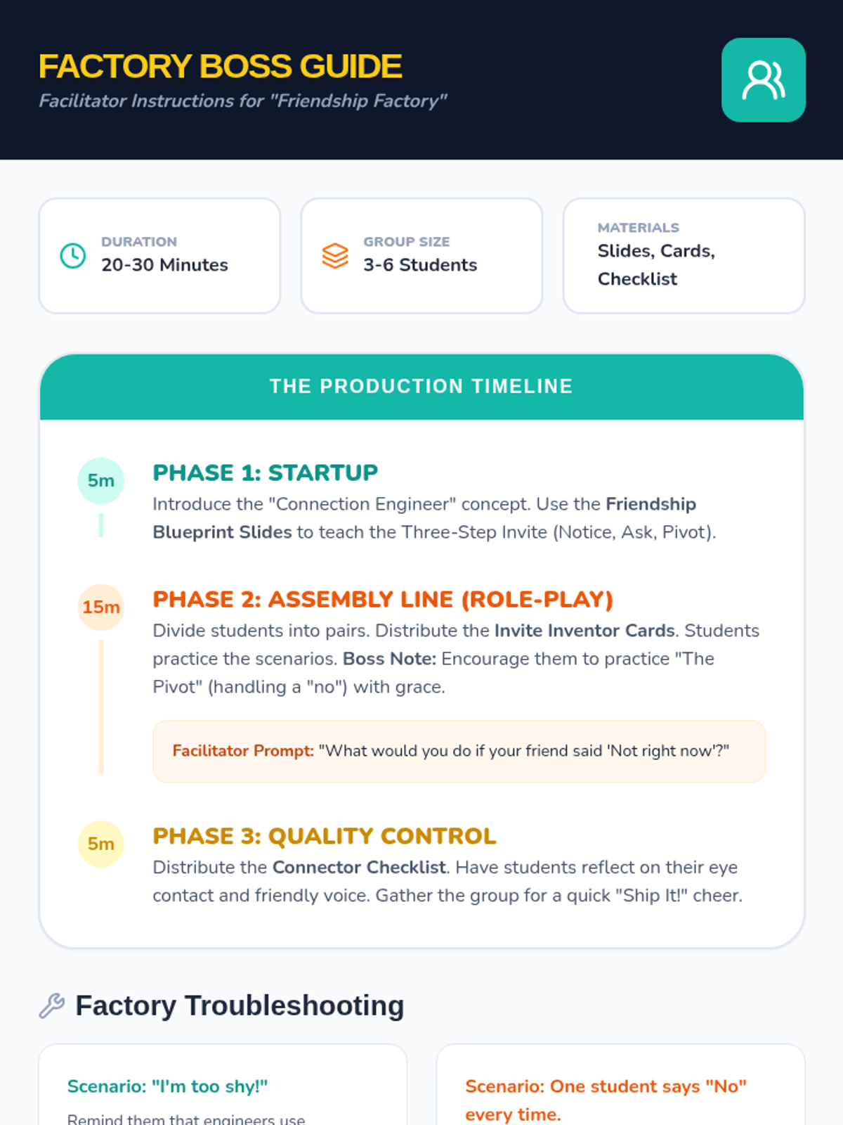 A comprehensive 'classroom reset' lesson designed to help a substitute and their students build a positive culture through the metaphor of a system upgrade. Students collaborate to define norms and understand their role in the classroom community.
