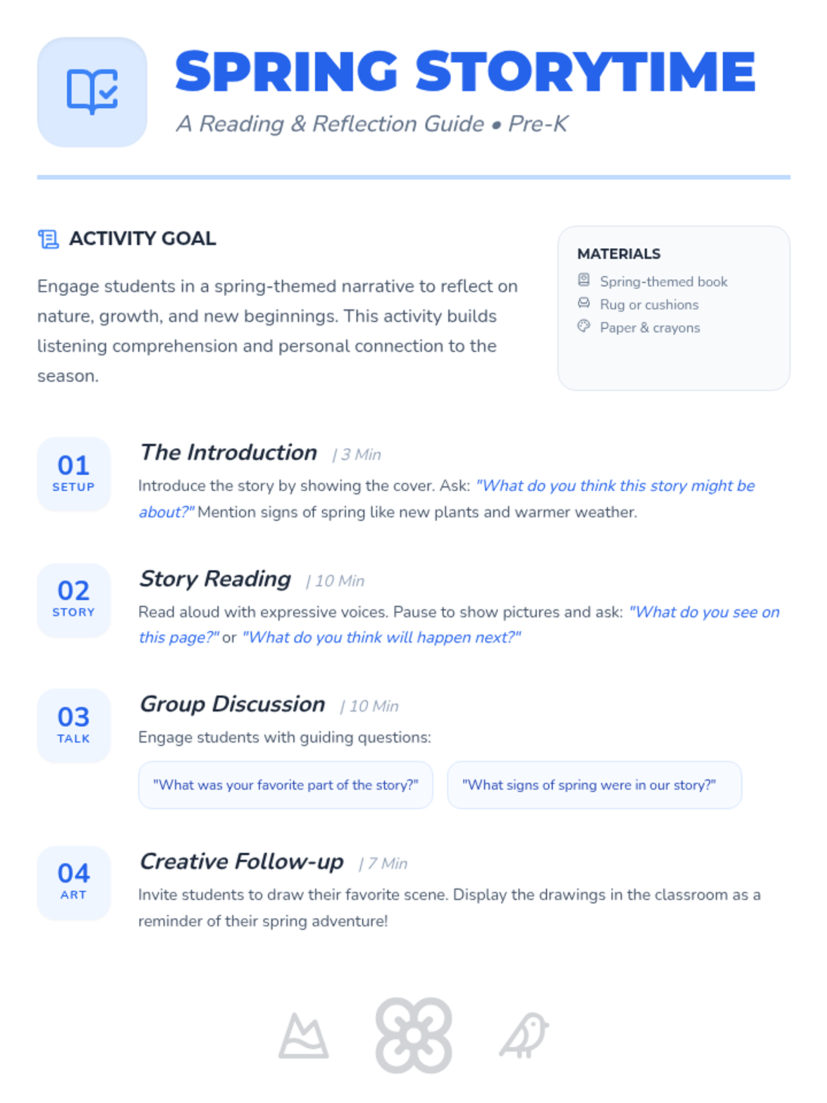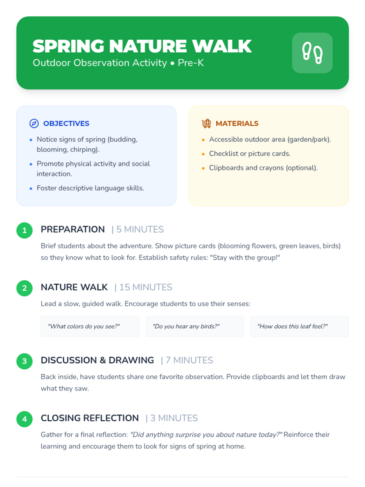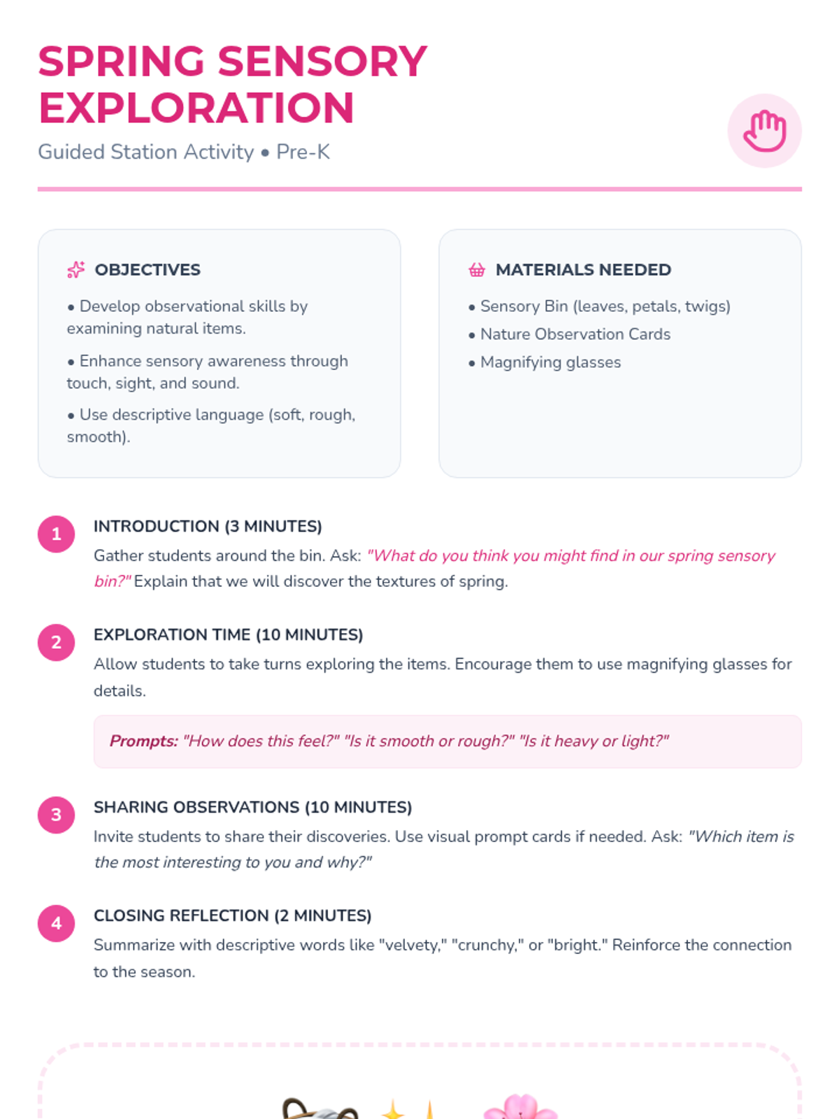 A delightful Pre-K lesson exploring seasonal changes through sensory bins, nature walks, and creative play to foster curiosity about the environment.