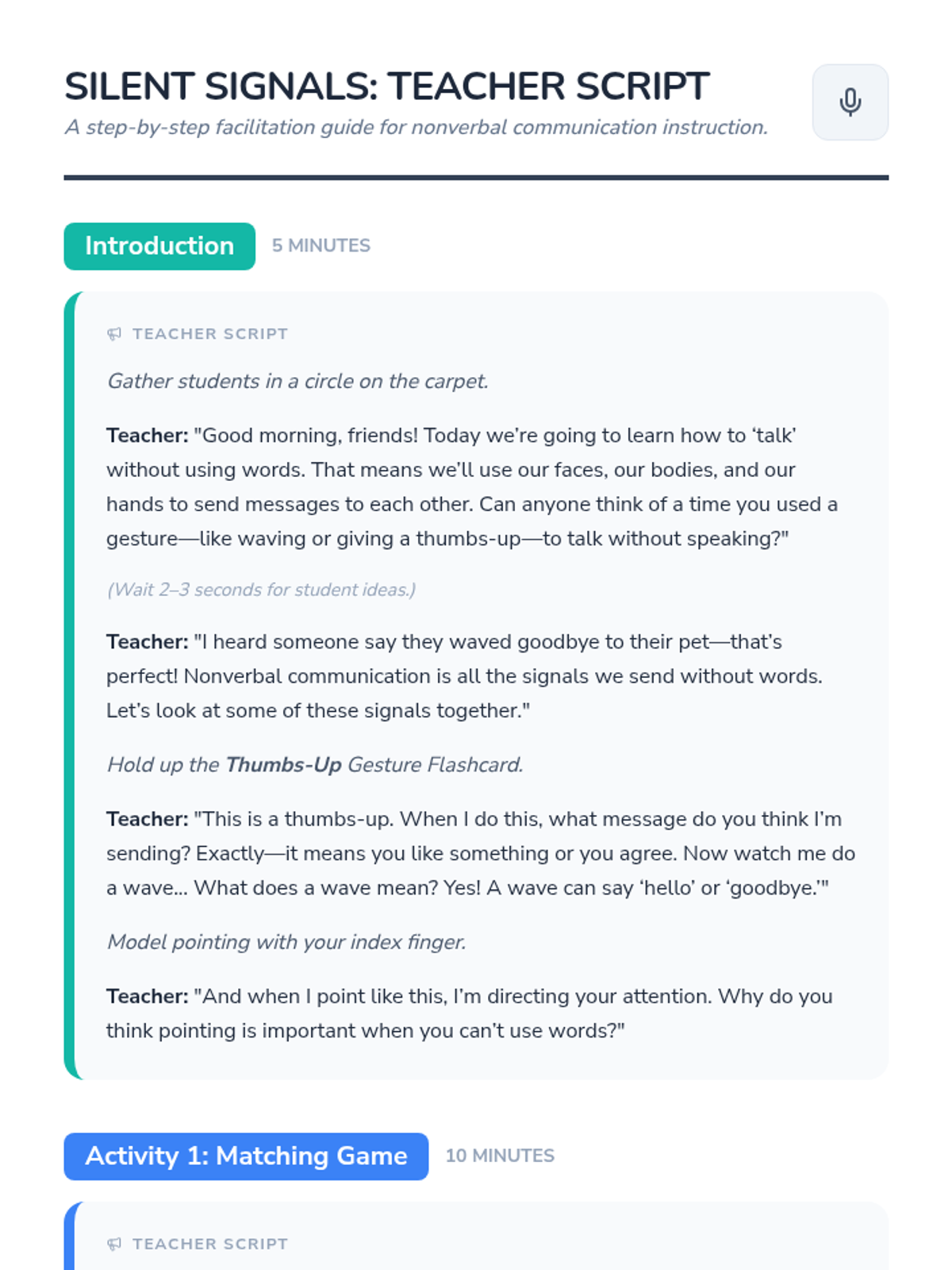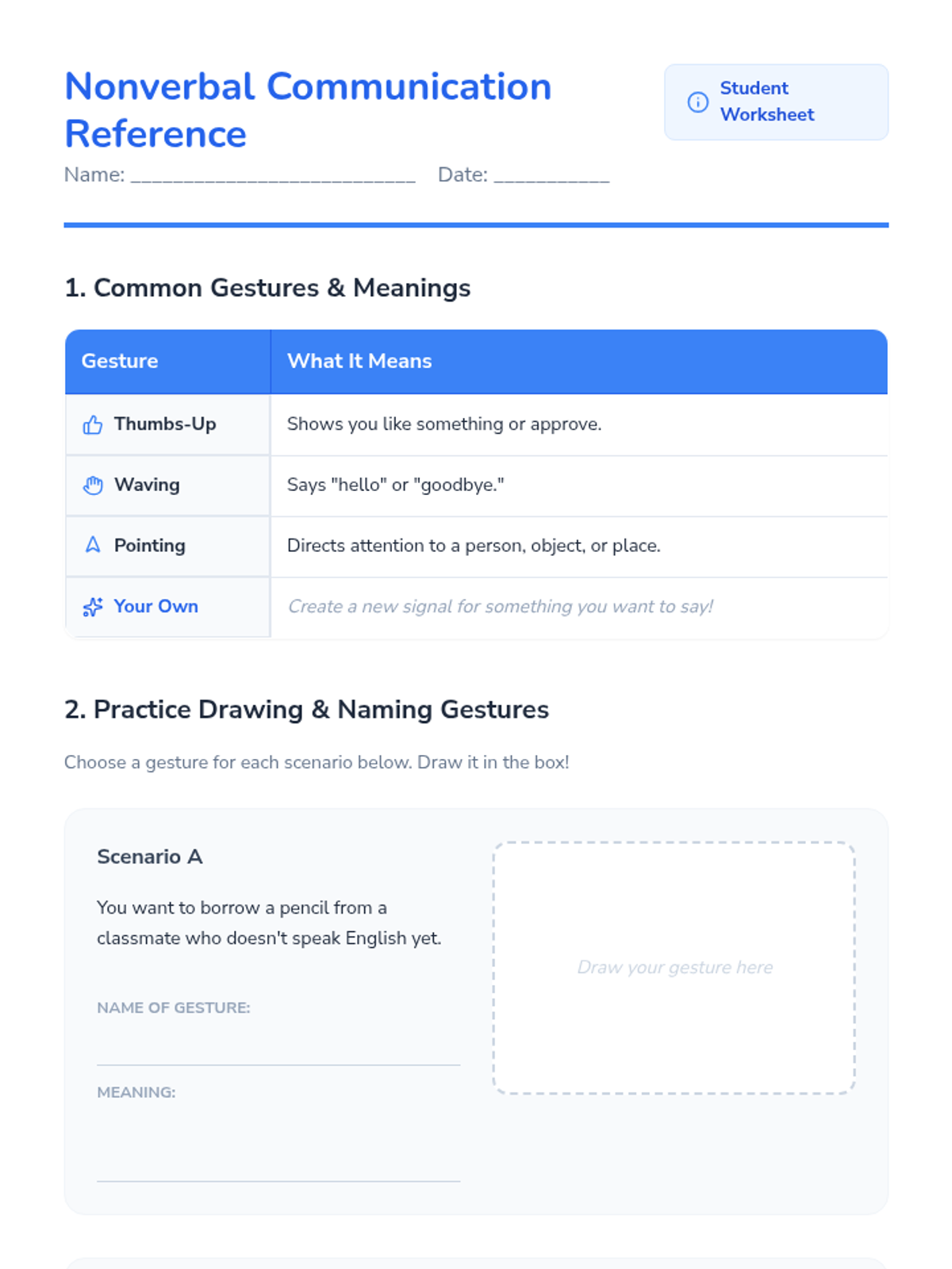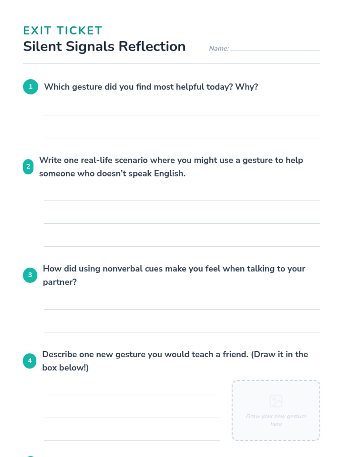 A 30-minute lesson for 3rd graders on using gestures, facial expressions, and body language to foster empathy and communicate with non-English speaking peers.
