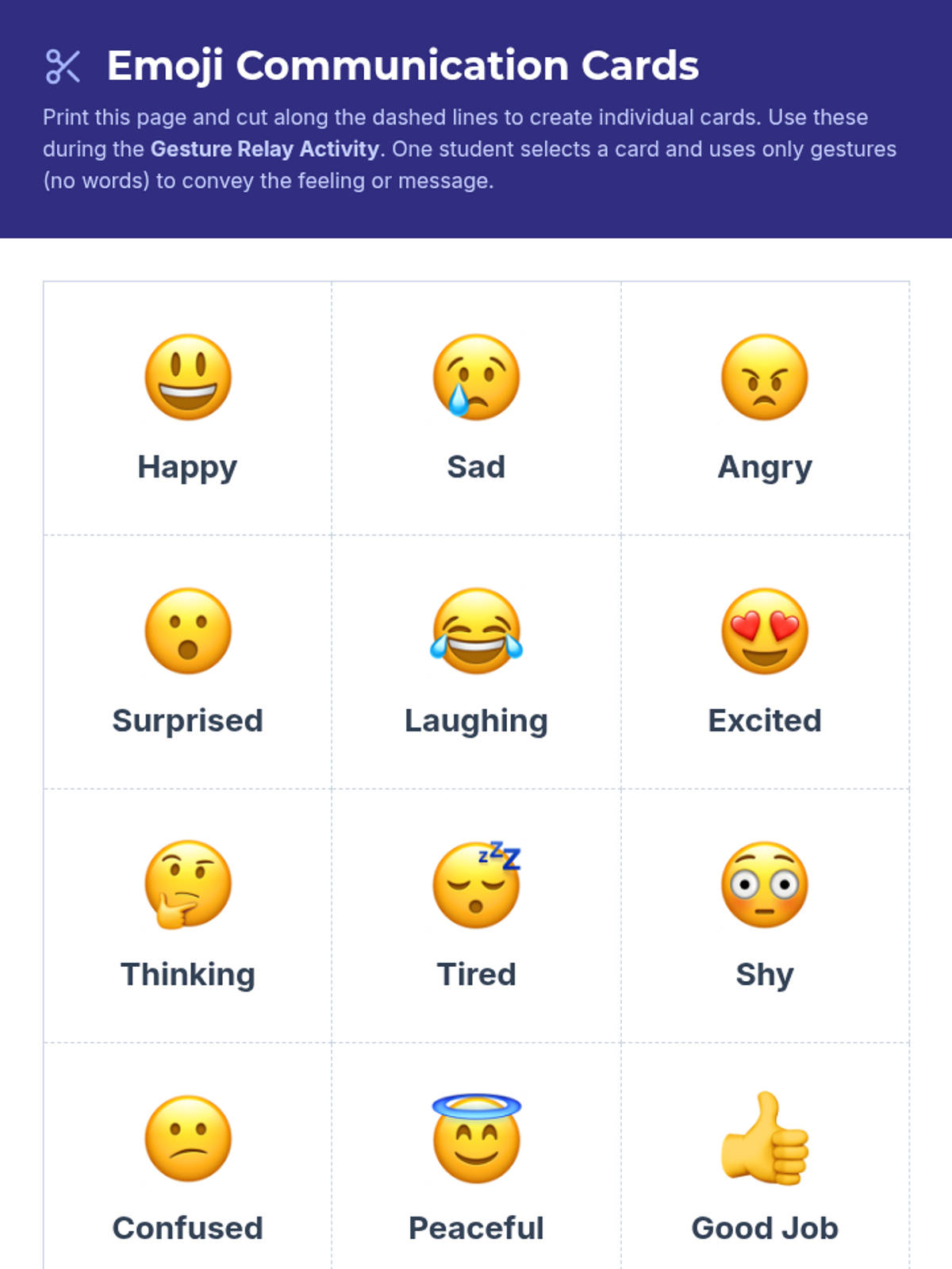 A set of discreet communication cards designed for an 8th-grade student to advocate for their needs during moments of frustration or sensory overwhelm.