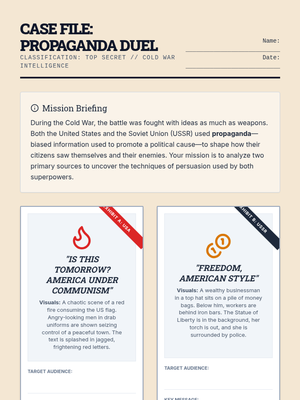 A deep dive into the ideological conflict of the Cold War through the lens of propaganda. Students will analyze techniques used by both the US and the USSR to influence public opinion and contrast their messaging strategies.