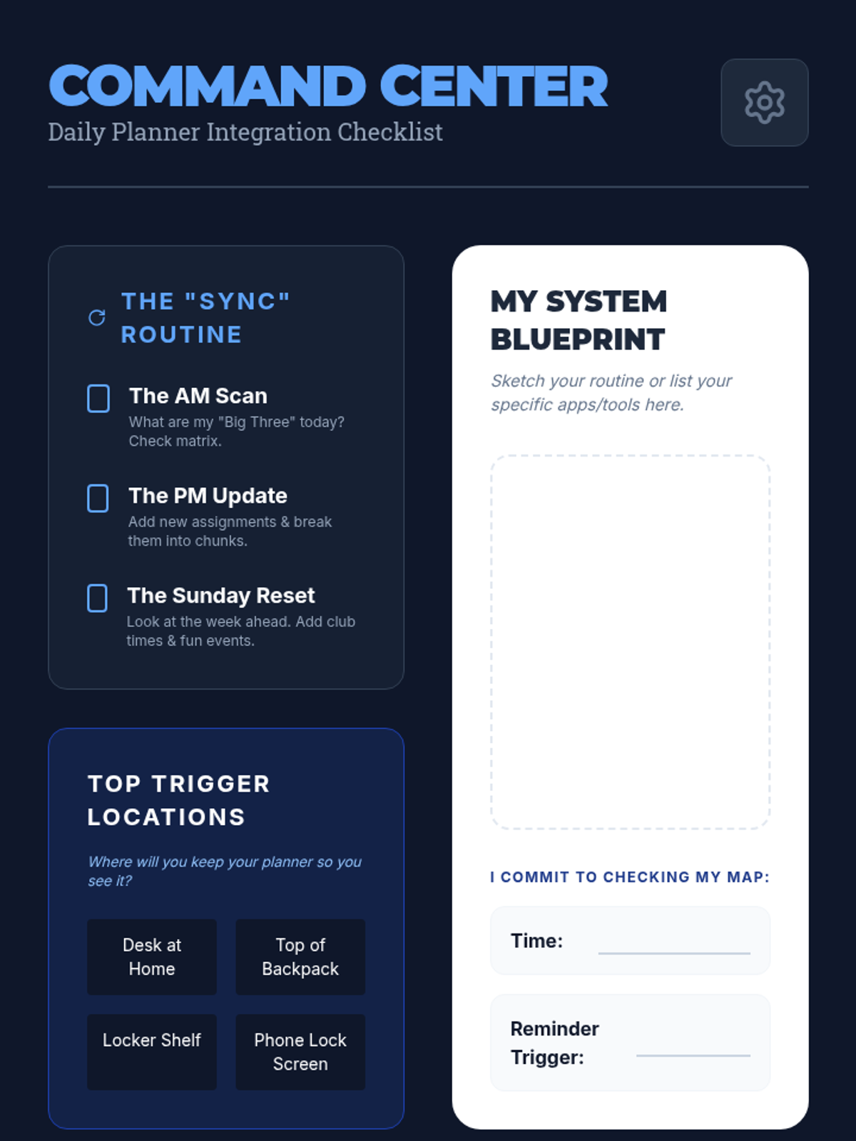 Establishing a weekly planning routine and reflecting on personal executive function tools for long-term success.